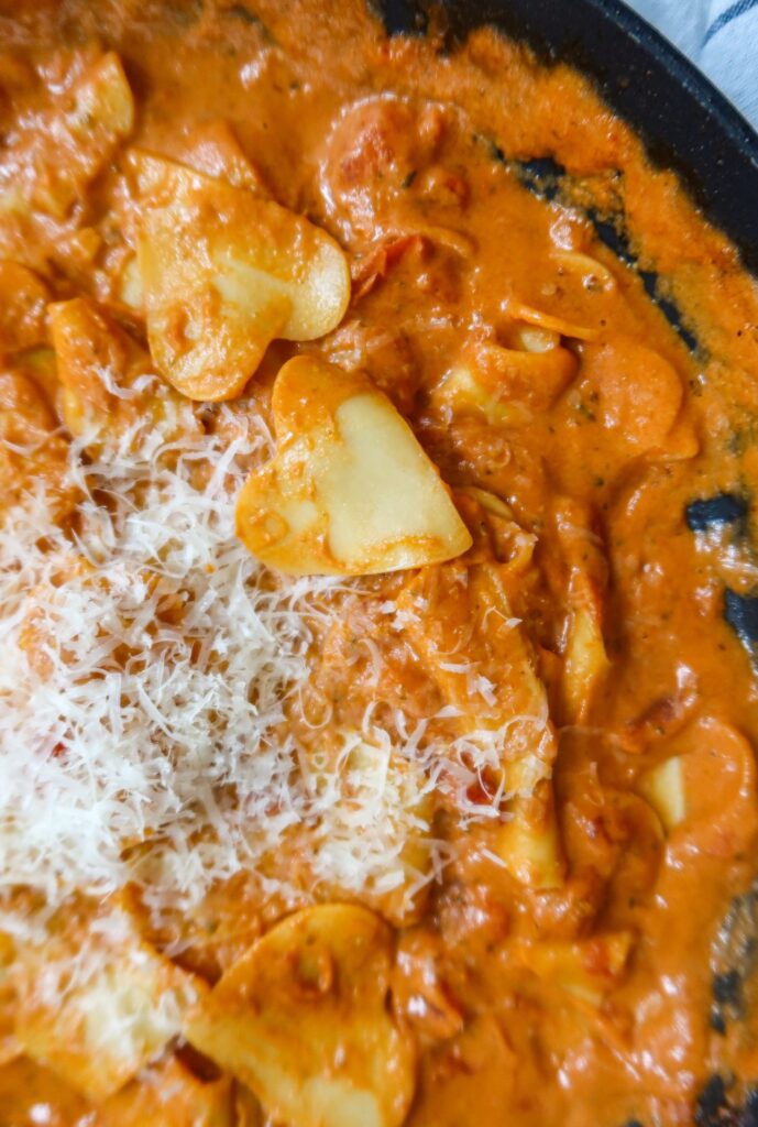 Det här är också en perfekt rätt om du vill imponera på gäster t ex, utan att stressa i köket. Hjärtformen gör hela grejen, ser ut som små guldhjärtan i en sammetslen sås med parmesan i överflöd. Kan ju inte bli annat än succé om du frågar mig. ❤️
