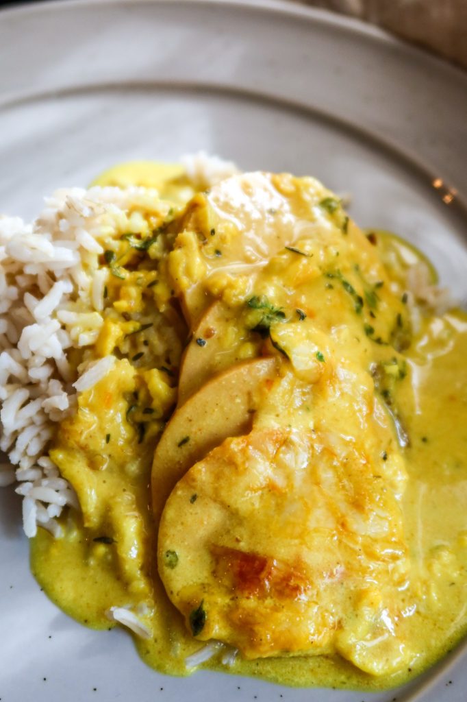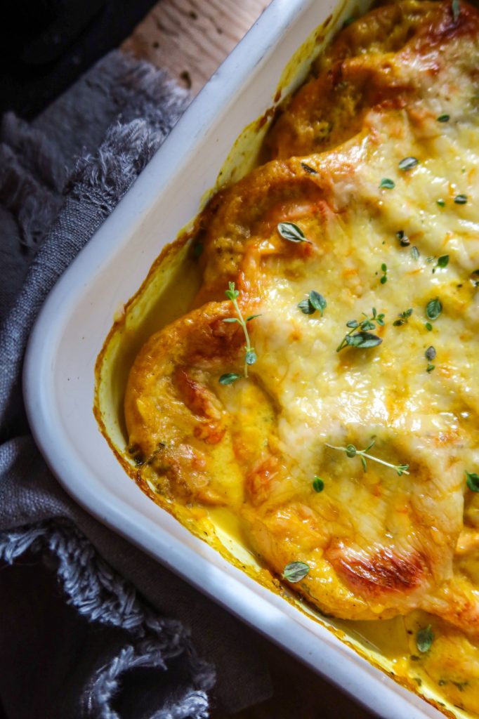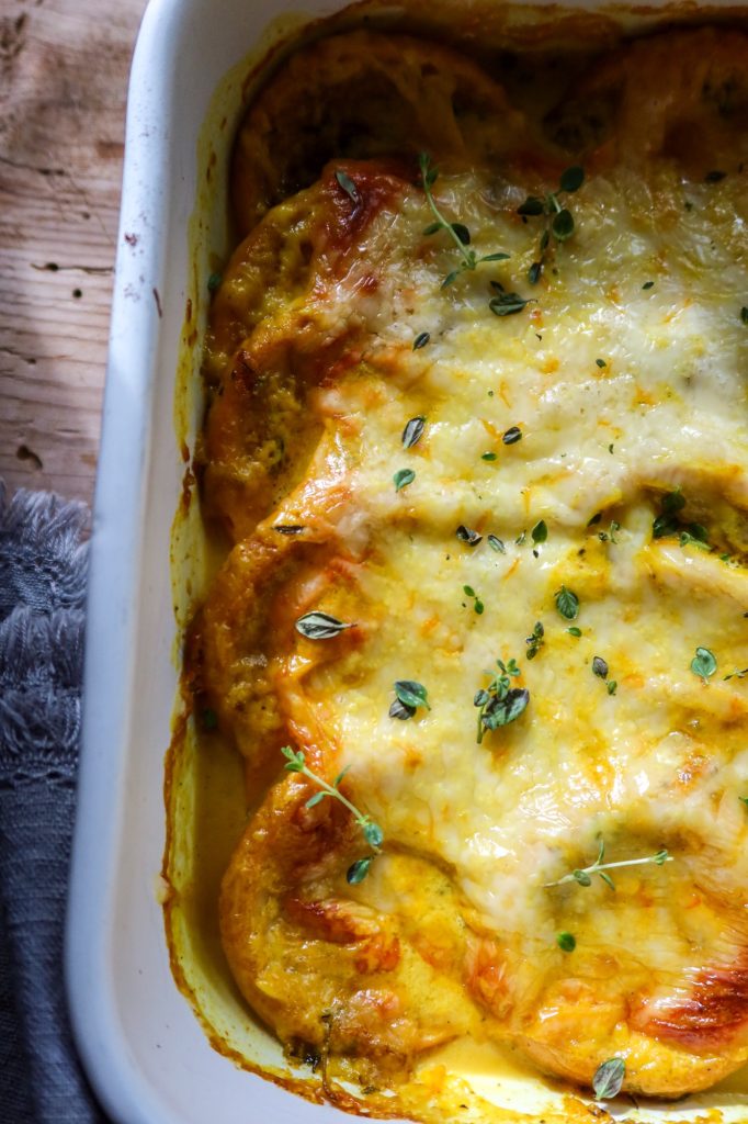 Korven fÄr sÀllskap av en ljuvligt krÀmig sÄs med mild curry, grÀdde, crÚme fraßche och en hint honung. Toppa med riven ost och gratinera tills det bubblar⊠ja, du fattar. Den hÀr fick 10 poÀng hÀr hemma, sÄ testa den vetja!