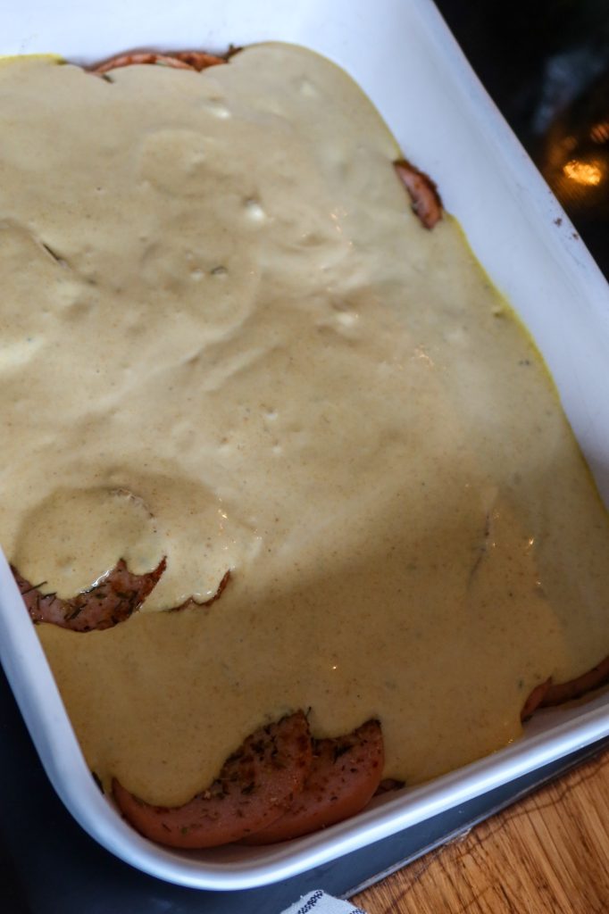 6. Gratinera i 200°C i ca 25 minuter tills osten Àr gyllene och bubblig.