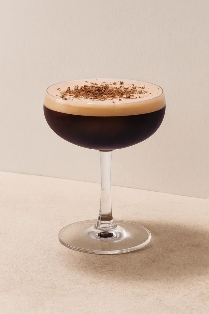 Skaka alla ingredienser med is, sila upp och toppa med riven choklad.