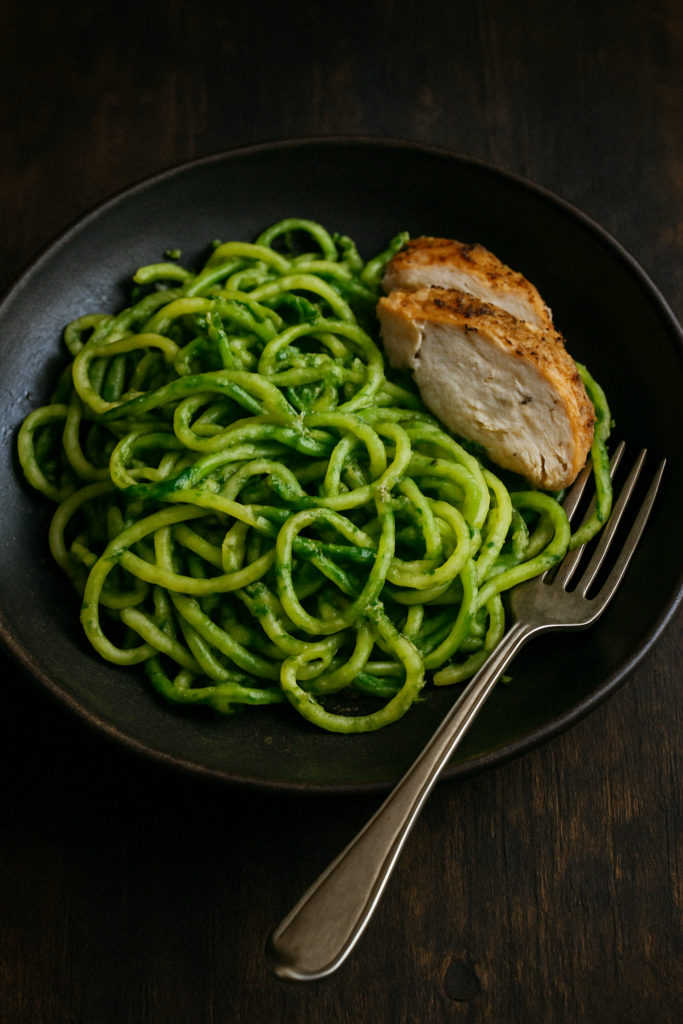 3. Zucchininudlar med pesto och kyckling – Fräscht, lätt och så gott! En favorit när man vill ha något low carb.