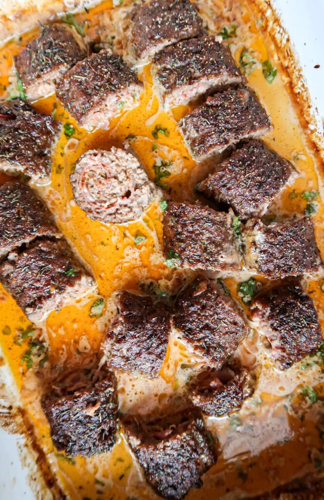 Galet gott! När man tar den vanliga köttfärslimpan till nya höjder. Så himla gott att gratinerade de där köttfärslimpaskivorna och få denna rätt!