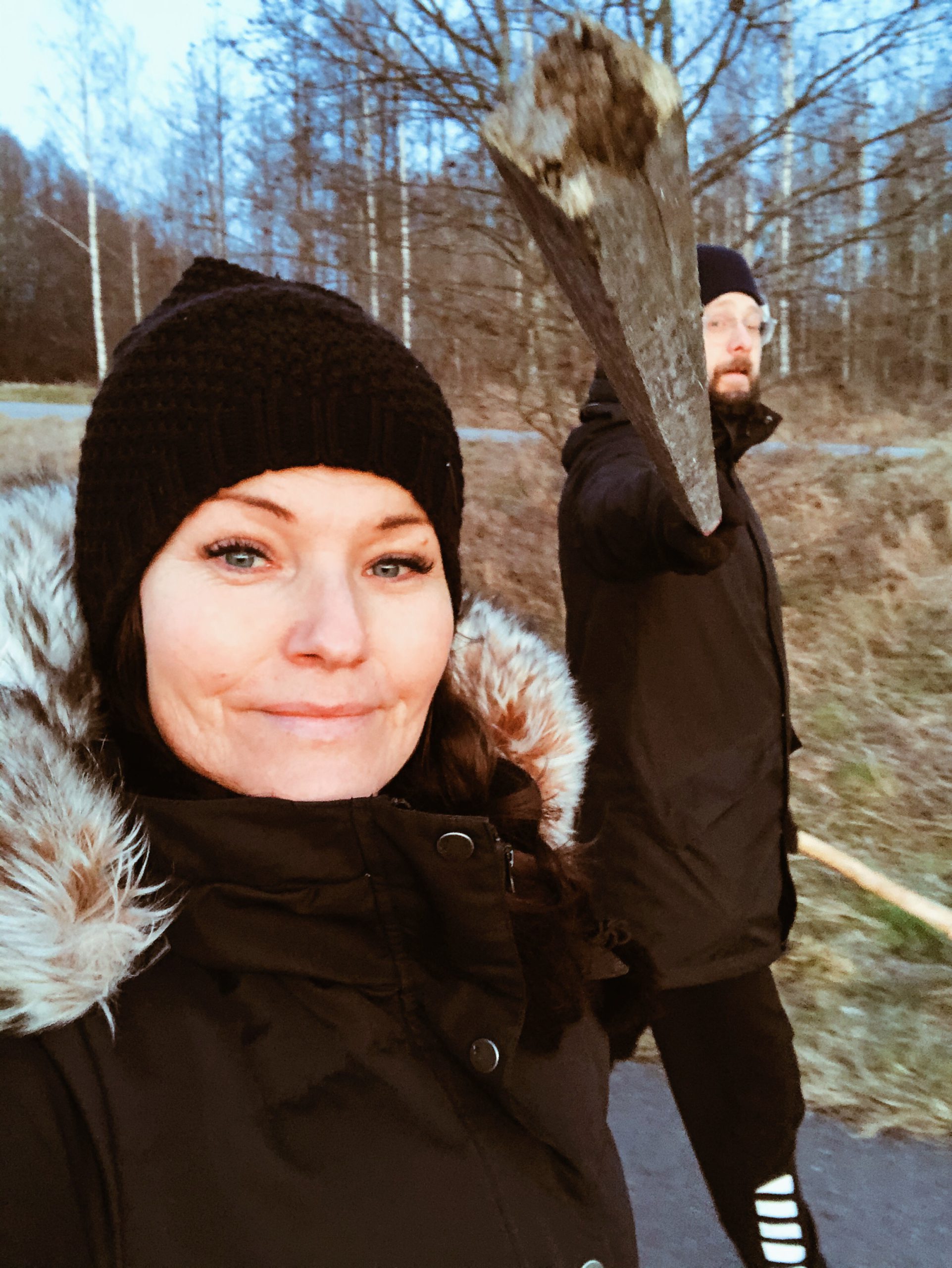 Det plockades pinnar stora som träd. Haha…. ni vet ungar och en riktigt bra pinne. 🥰 Snöpinnen försökte han att sätta fast igen men det gick inte.