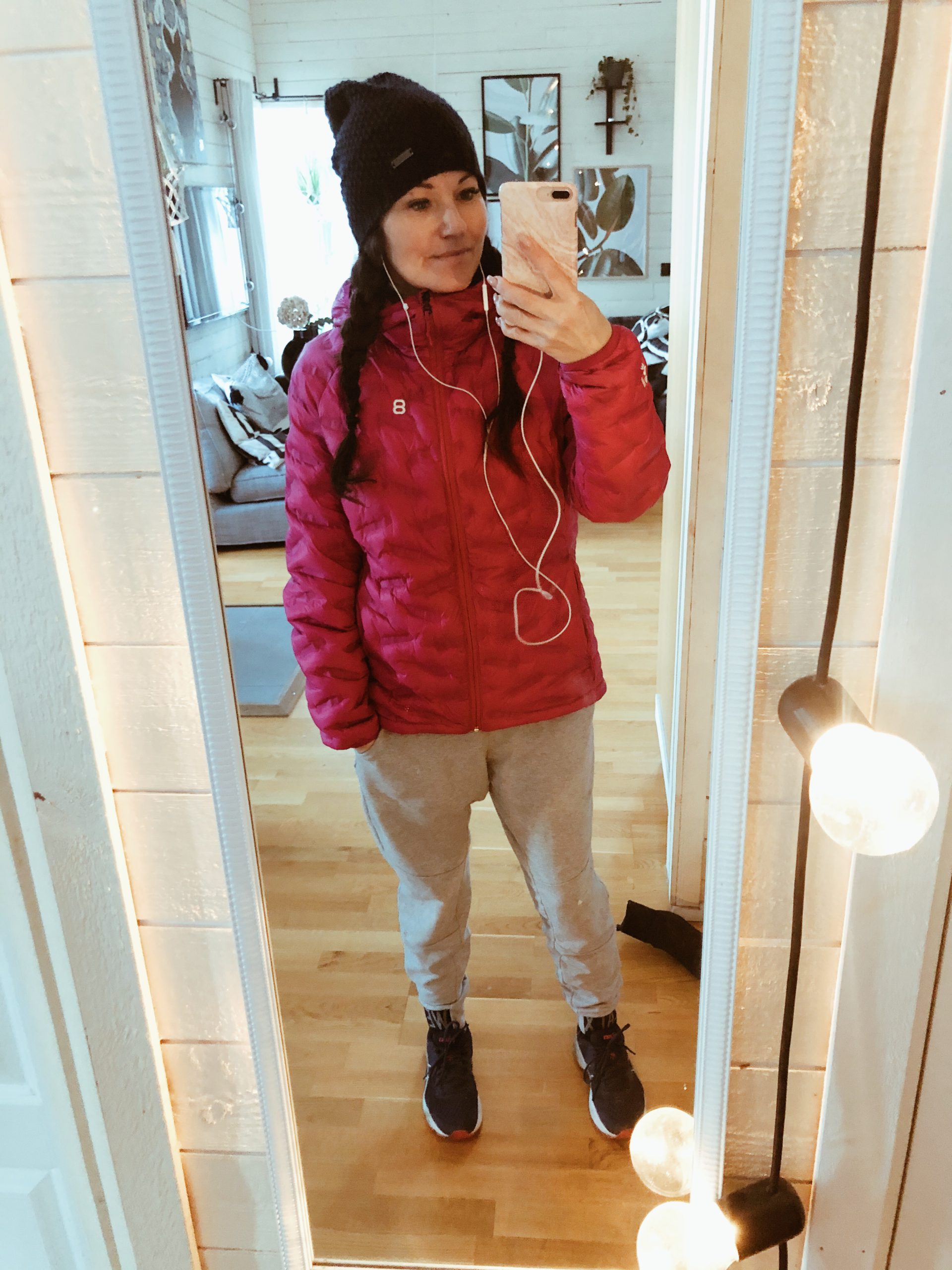 Redo att ge mig ut i snålblåsten, fixade flätor så håret inte skulle blåsa sönder. Haha…. närå, nog fasen borde det klara lite snålblåst? Jag hade Alex och Sigge i lurarna.