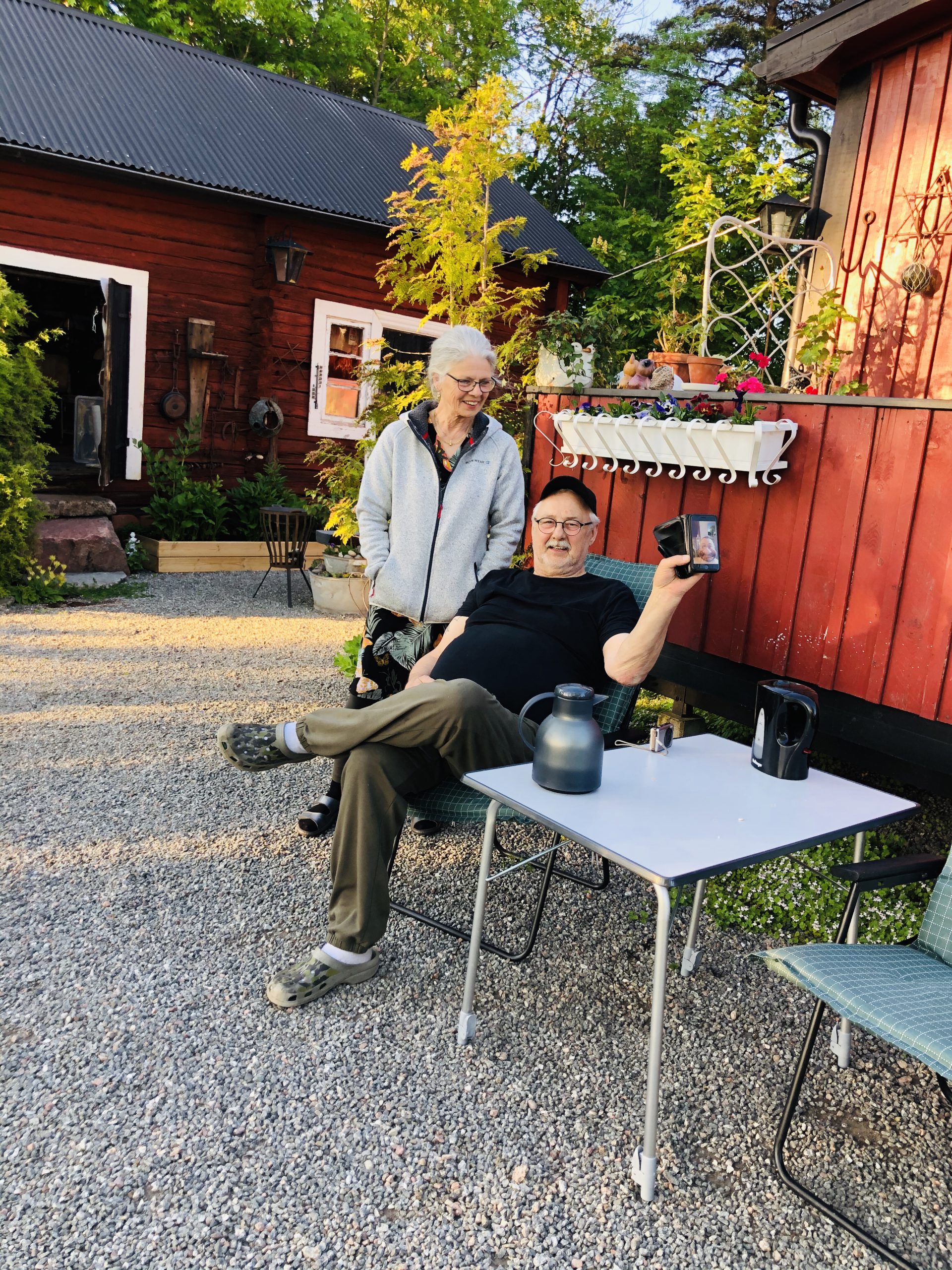 Idag hittade jag den här sötisen i trädgården. Satt på en pinne i en stor kruka. Deras uterum som dom byggt blev verkligen så fint, där inne trivs man kan jag säga.