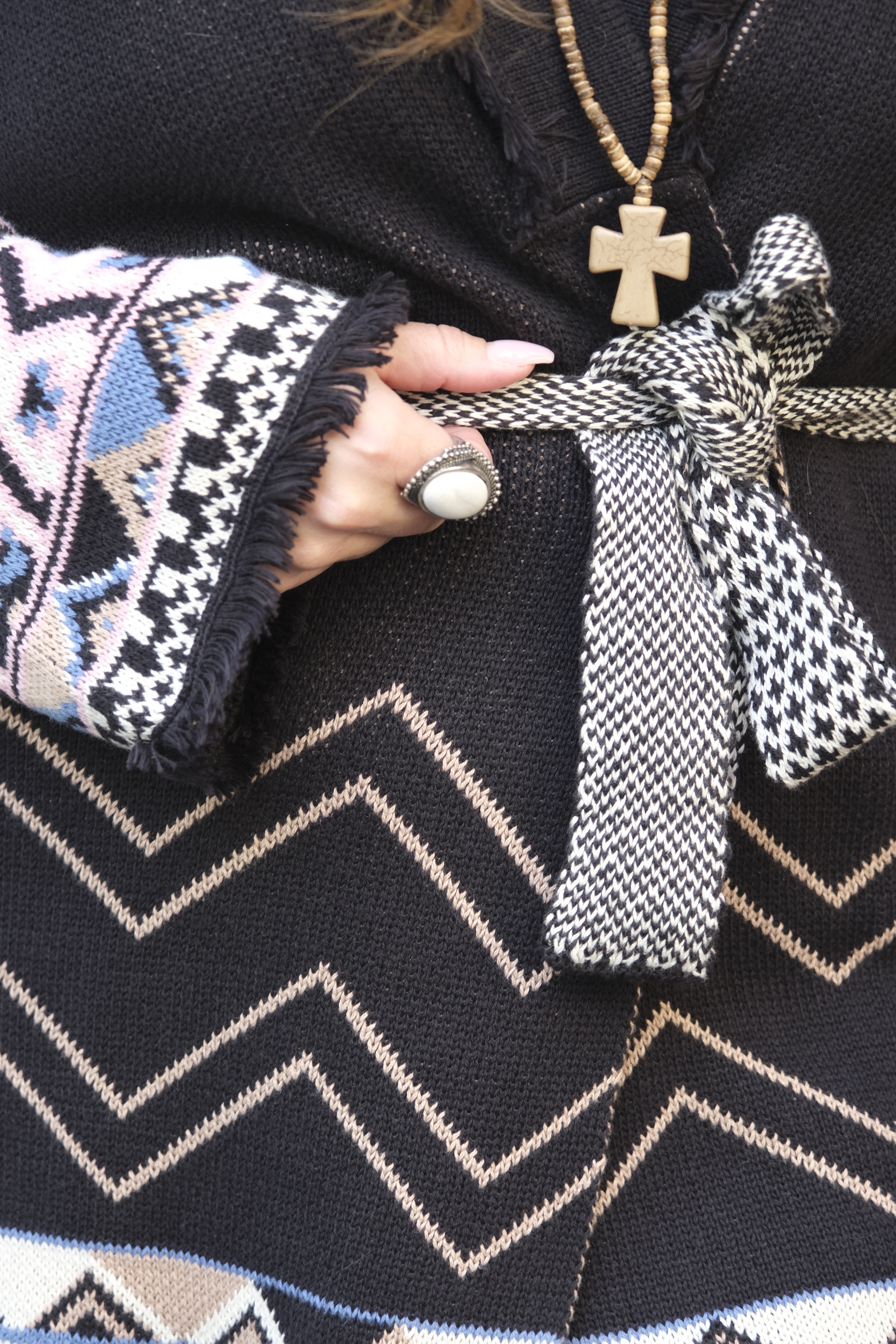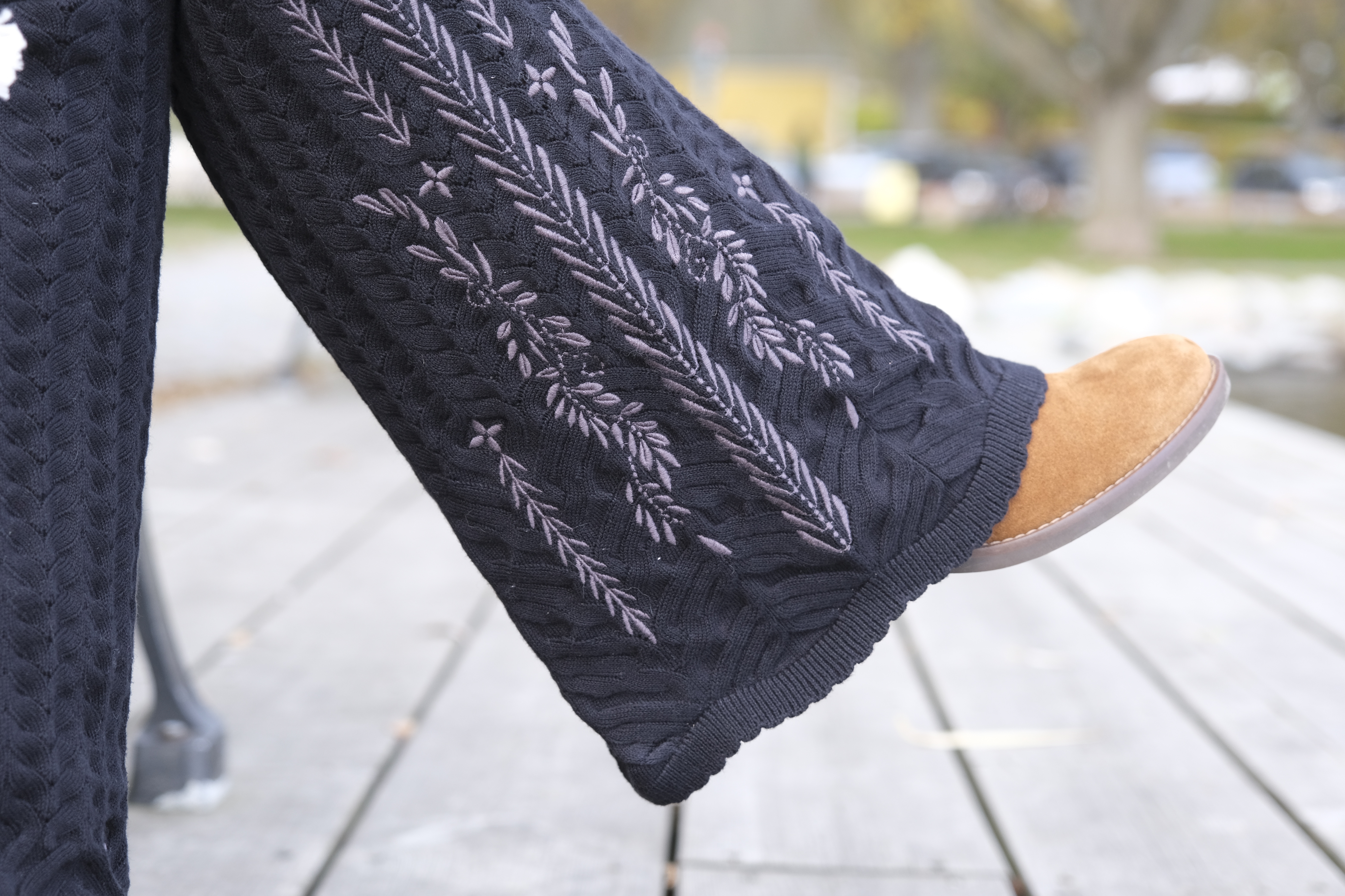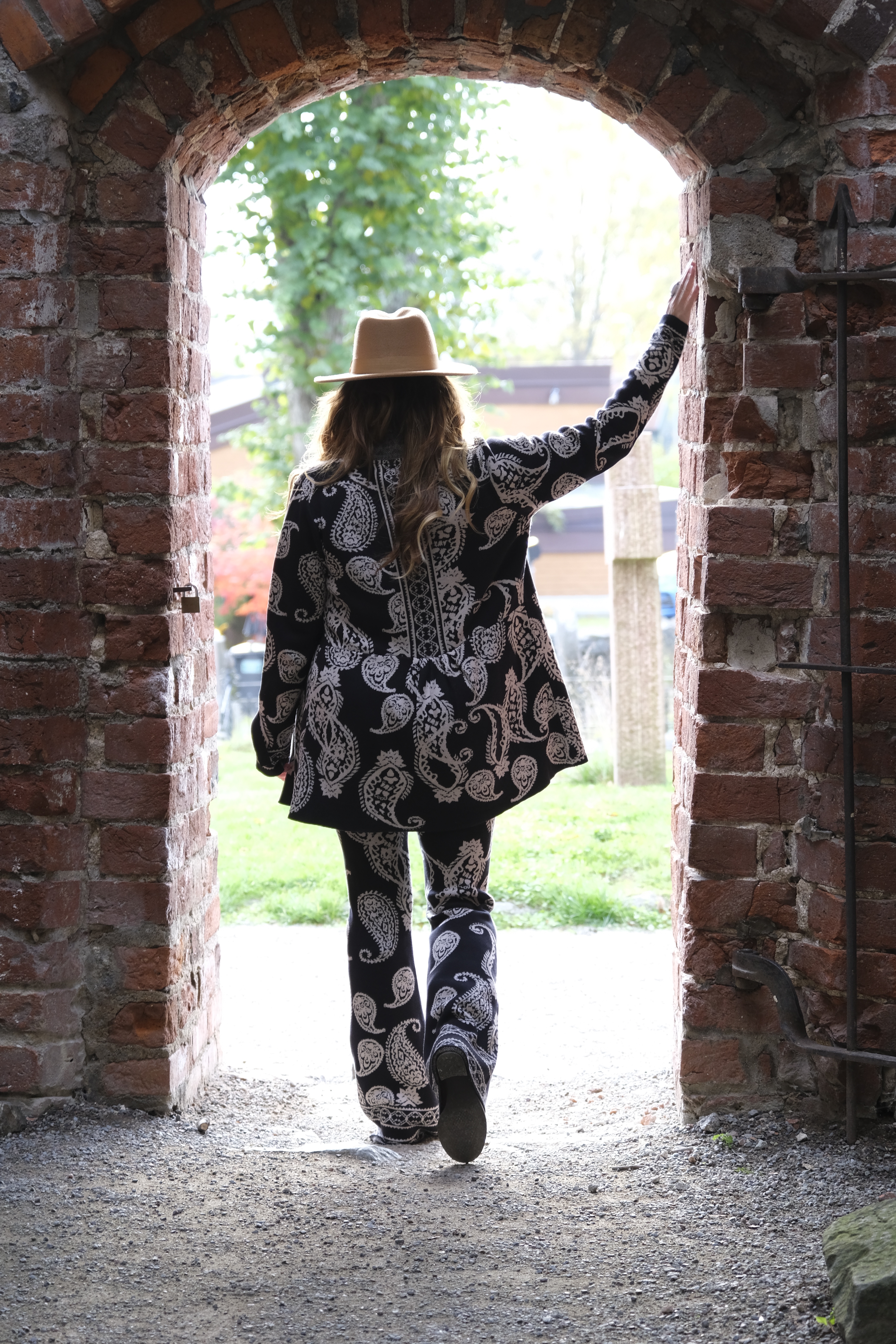 Alltså wooooow woooow wooooow! Som jag föll pladask för denna ”kostym”. Allt i skönt stickat material. Och så detaljerna och printet!!! Koftan är som en riktigt snygg kavaj, har du ett spetslinne eller en snygg blus under kan du gå på en riktigt fin middag eller fest i den. Nej men sååå snyggt. Byxorna, sköna som mysbyxor och så underbart snygga och coola! Skön resår i midjan så de klämmer absolut ingenstans. Gud vad jag kommer använda detta alltså.