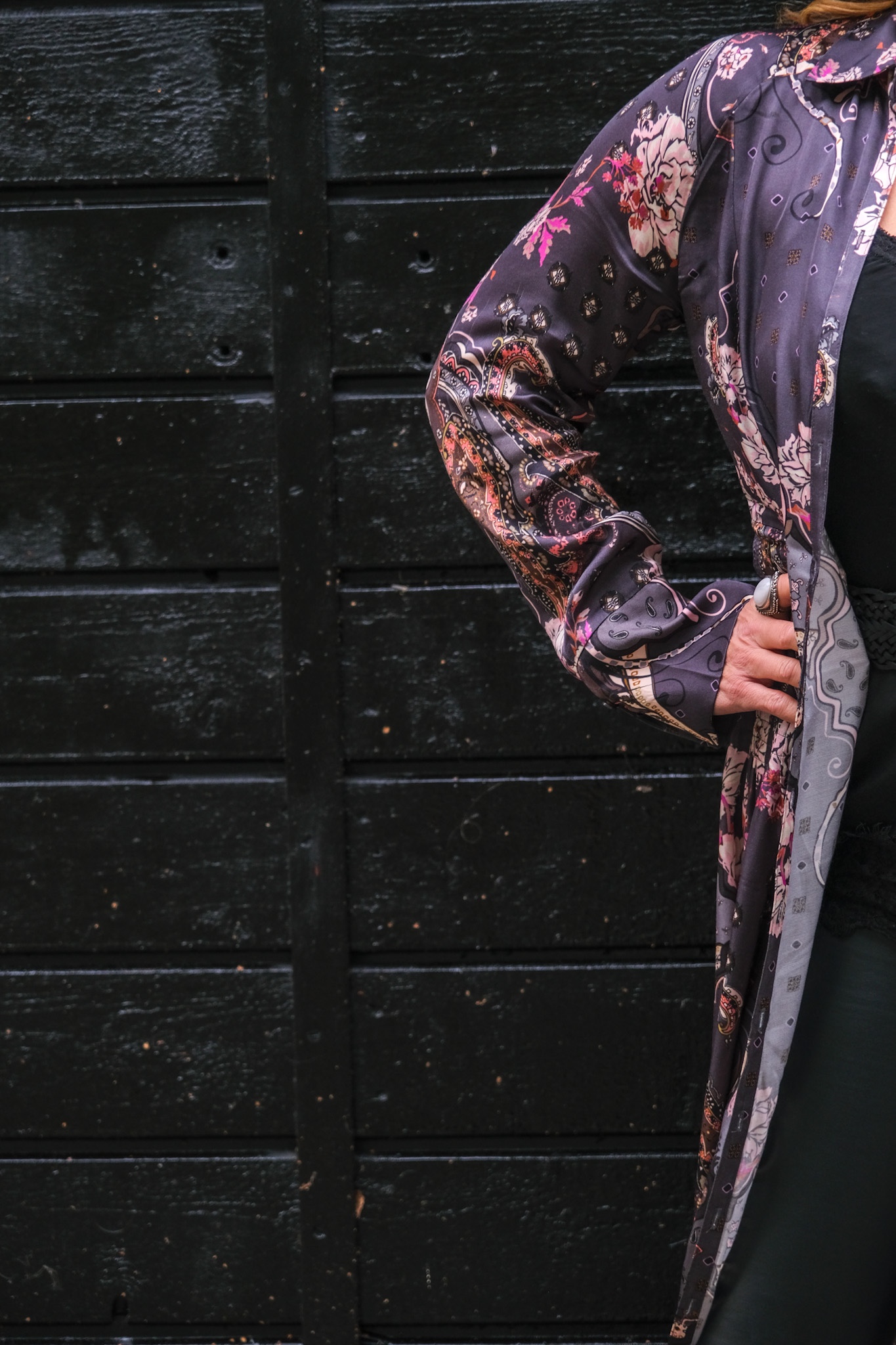 Alltså, denna klänning alltså…. Jag blev sååå kär. Materialet går inte ens att beskriva för det är så följsamt, mjukt och lyxigt. Ekologisk viskos och rayon, bland det lyxigaste jag känt på min kropp. Trycket är jag sååå förälskad i. Såå fin form på den. Åh vad jag älskar den. Jag har burit ned knäppt som en ”vanlig” klänning, sedan har jag haft den som på bilden. Då blir den som en kaftan så användningsområdena är fler för denna vackra skapelse. Finns i en jättefin blå färg också.