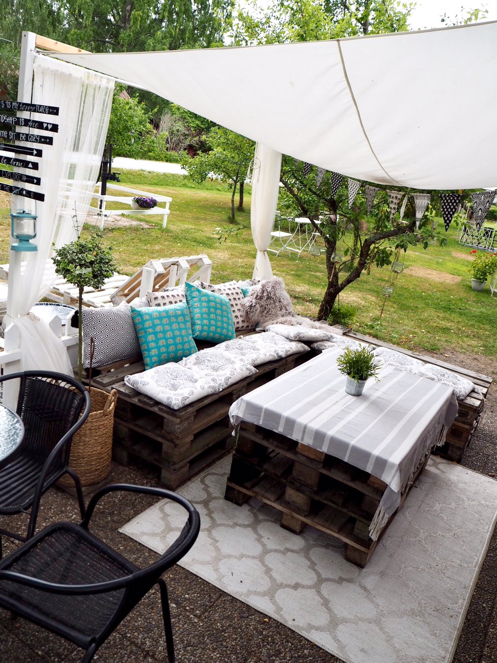 Ingen solig dag idag när jag fotade allt. Men man kan göra mycket bara av att sätta ihop lite lastpallar i olika storlekar!