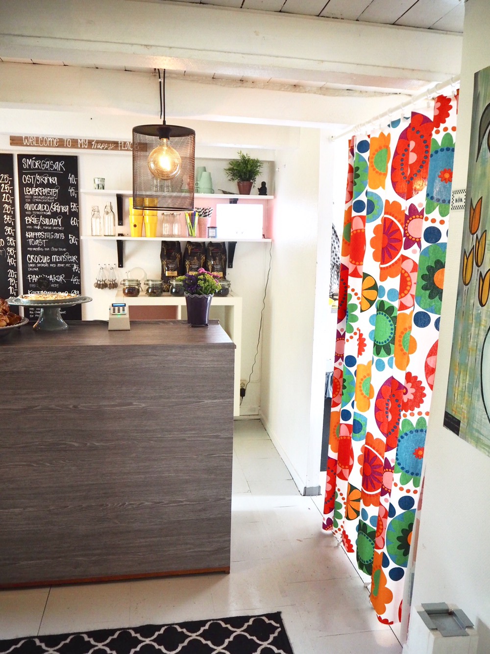Här har vi själva cafédisken där gästerna beställer och handlar. Den här delen fick jag tänka till mest på. Det är trångt och mycket som ska hända liksom. Det ska få plats en kö här t ex. Det blev väldigt bra till slut i alla fall!
