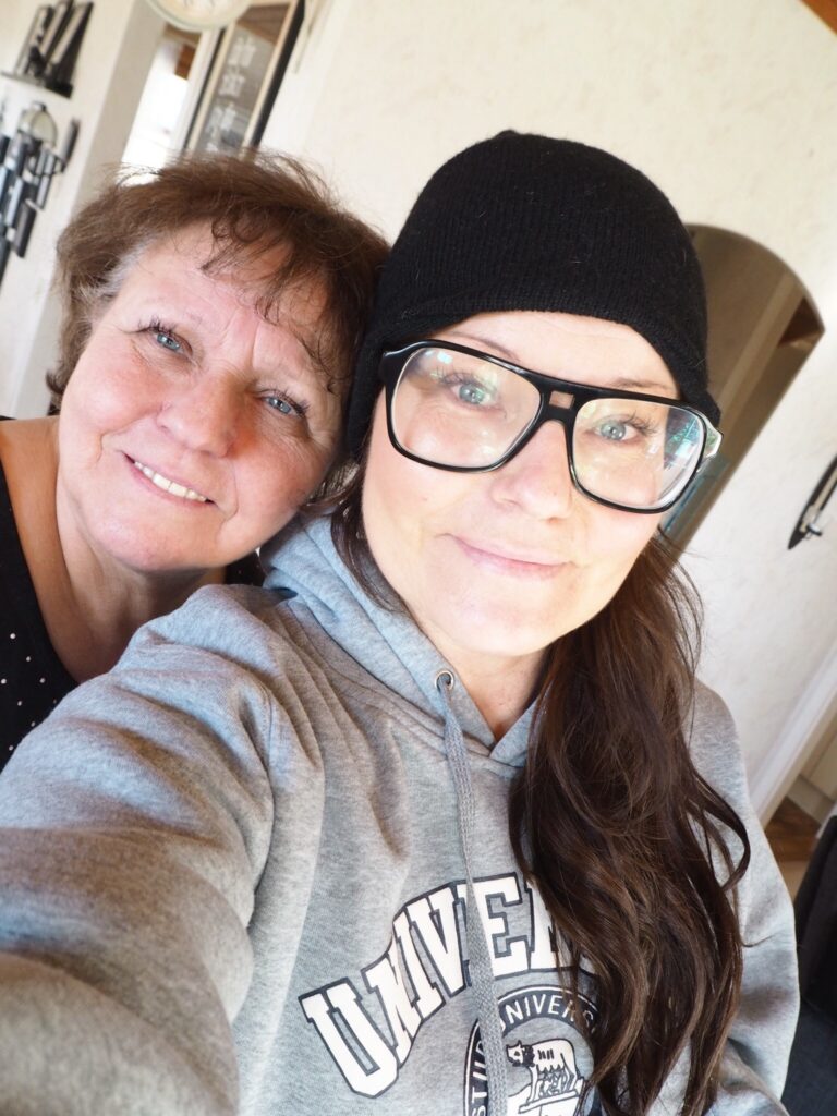 Godmorgon! Idag är jag hos min mamma. De kom äntligen hem från Norrland igår, har