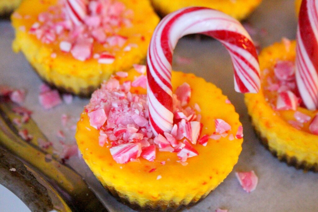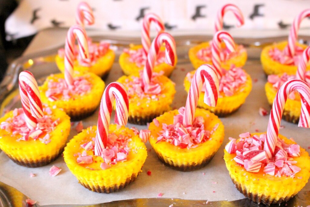 Smält smöret, krossa pepparkakorna ordentligt. Förslagsvis i en påse som du trampar på. Blanda samman krosset och det smälta smöret. Lägg ca 15 formar av nåt slag på en bakplåt. Jag använde silikonformar. Du kan också använda muffinplåt men var noga med att smöra varje form ordentligt då. Det funkar fint att ha detta i vanliga bakformar också. Ha i ca 1 msk pepparkakskrossblandning i varje form. Tryck till så det plattas och trycks ihop till en massa på botten. Jag tog ett litet glas och pressade till botten. Häll sedan smeten nästan ända upp i formarna. Ställ på nedersta falsen i ugnen och grädda i 15-20 minuter. Ta av dem från plåten och låt svalna helt, ställ dem seda i kylen i minst 1 timma innan de serveras. Dekorera med polkagriskross och candycanes.