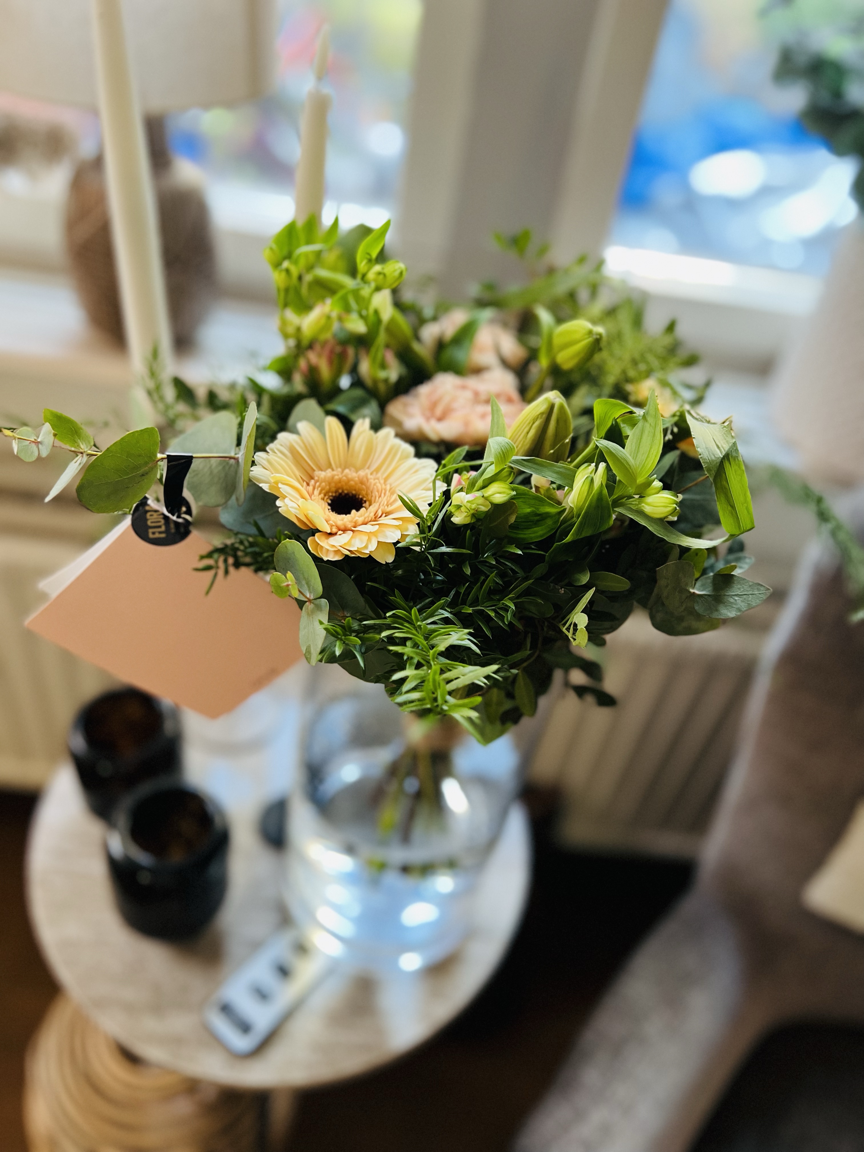 Som jag grät när detta blombud landade här hemma. Det var min älskade Thedde från Schweiz som skickade. Gissa min lycka? Han ville peppa sin mamma. Som jag behövde det och gissa om det satt som en smäck. De tuffa dagarna är det verkligen min familj som bär mig. Tänk vad jag får vara lycklig som har dom.