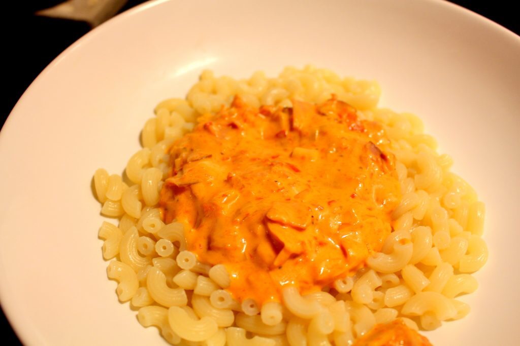 Gräddig rosé/grönpepparkorv i ugn