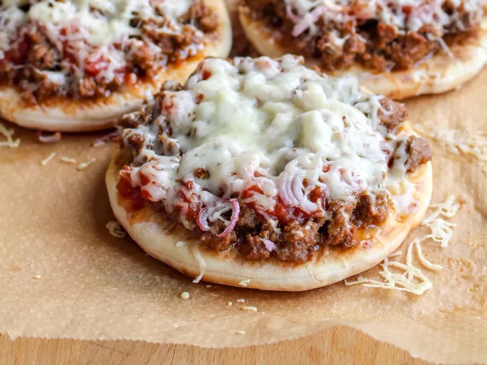 Supergoda snabbpizzor med köttfärsröra (<recept)