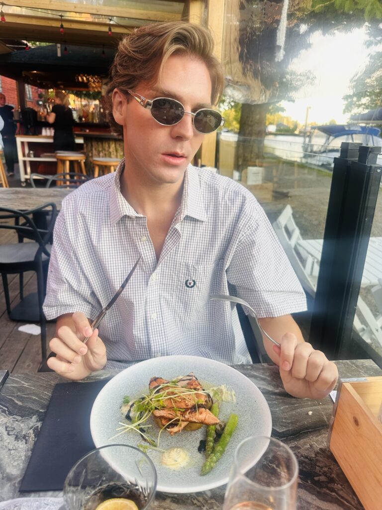 PĂ„ kvĂ€llen fick jag göra nĂ„got som Ă€r ganska sĂ€llsynt numera , egentid med min Elliot, som jag ofta kallar âMellanâ hĂ€r pĂ„ bloggen. Vi gick till Hamnamagasinen och Ă„t röding med dillmajonnĂ€s och grillad sparris⊠sĂ„ gott! Och rĂ€klĂ„dan till förrĂ€tt var pricken över i. đŠ