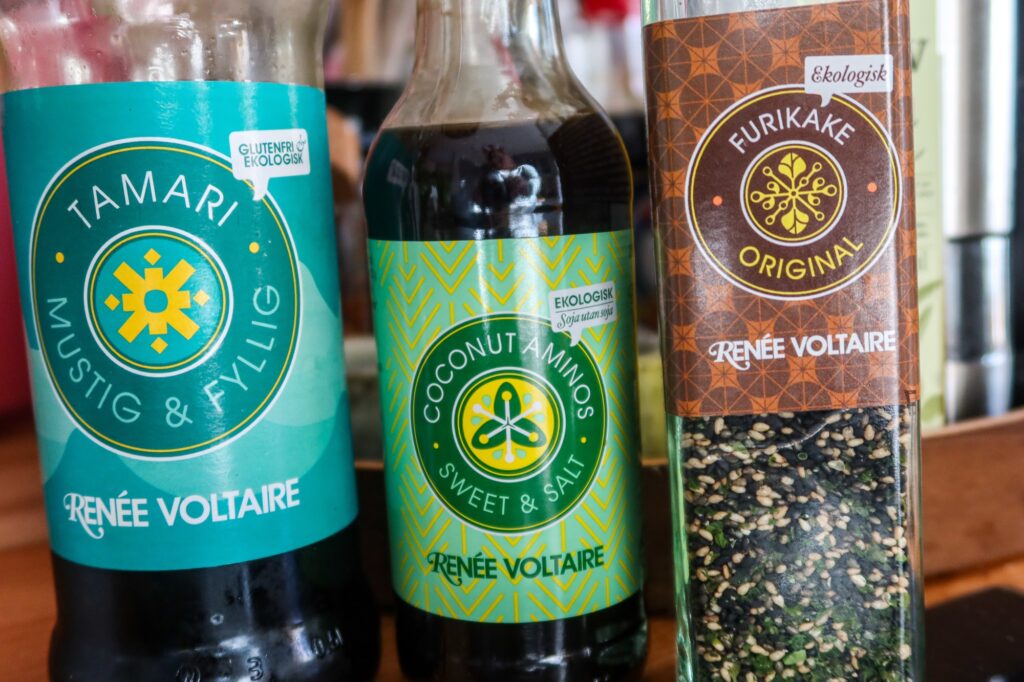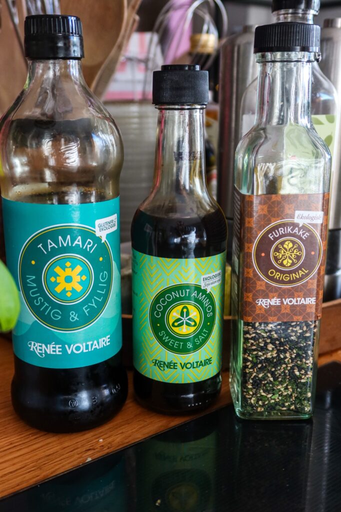 Hade även i lite Tamari (<klicka), denna är glutenfri också), den innehåller soja men på något konstigt sätt klarar jag denna bättre. Lagrad i 6 månader, ekologisk. Perfekt i thailändska rätter, marinader, i matlagning, såser och att ha i riset.