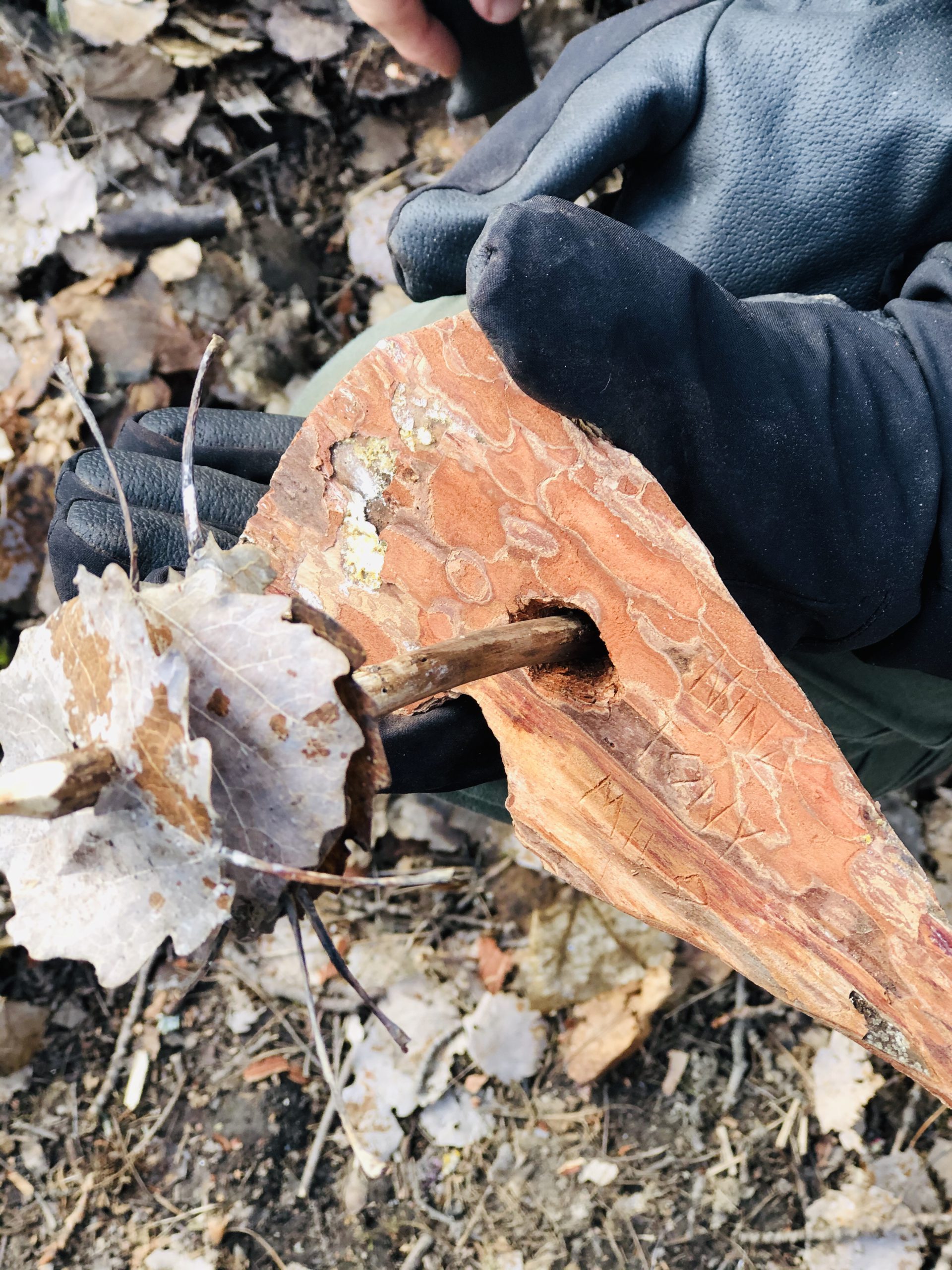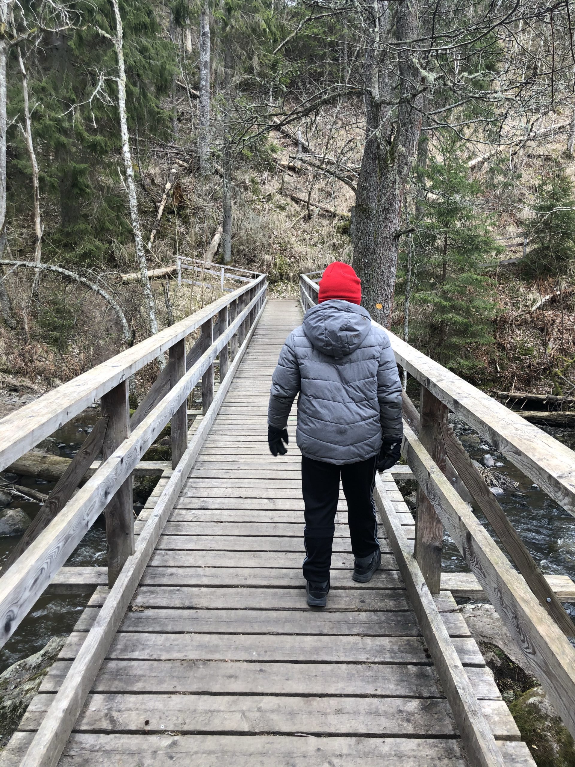 Tony började tälja en barkbåt och vi utforskade bron jag och Milo. Vem täljer ens en barkbåt sådär rakt upp och ned? Jo men min Tony gör det. Blev ju helt kär att han tagit med sig täljkniven och kunde ta upp den som värsta McGuyver och tälja till en barkbåt bara sådär. Haha….. ❤️