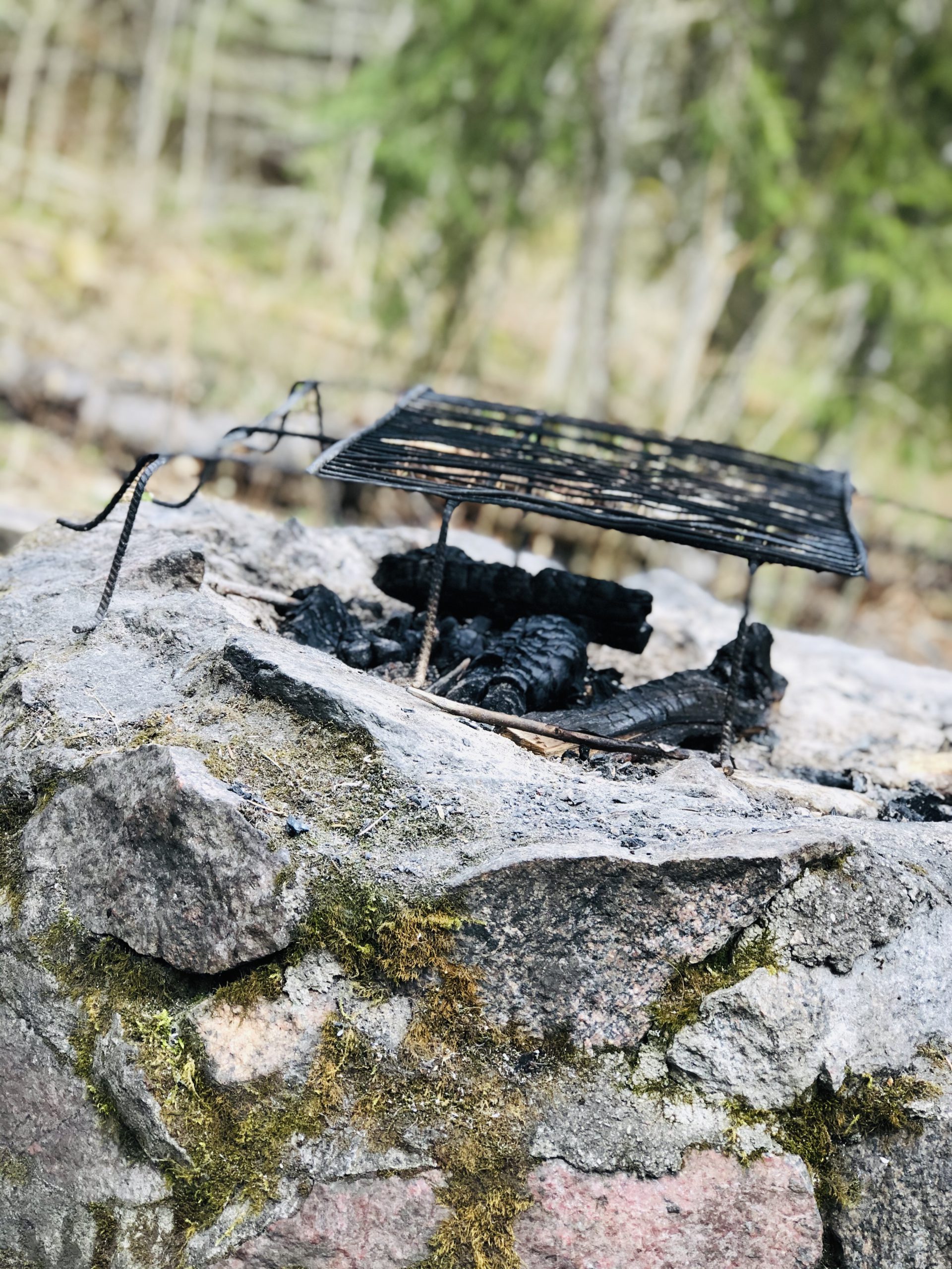 Vi satte oss vid den här eldstaden och fikade. Min nybakta äppelkaka var med, sen kokade vi med oss te och varm choklad. Fanns t.o.m en liten toa i anknytning till grillplatsen.