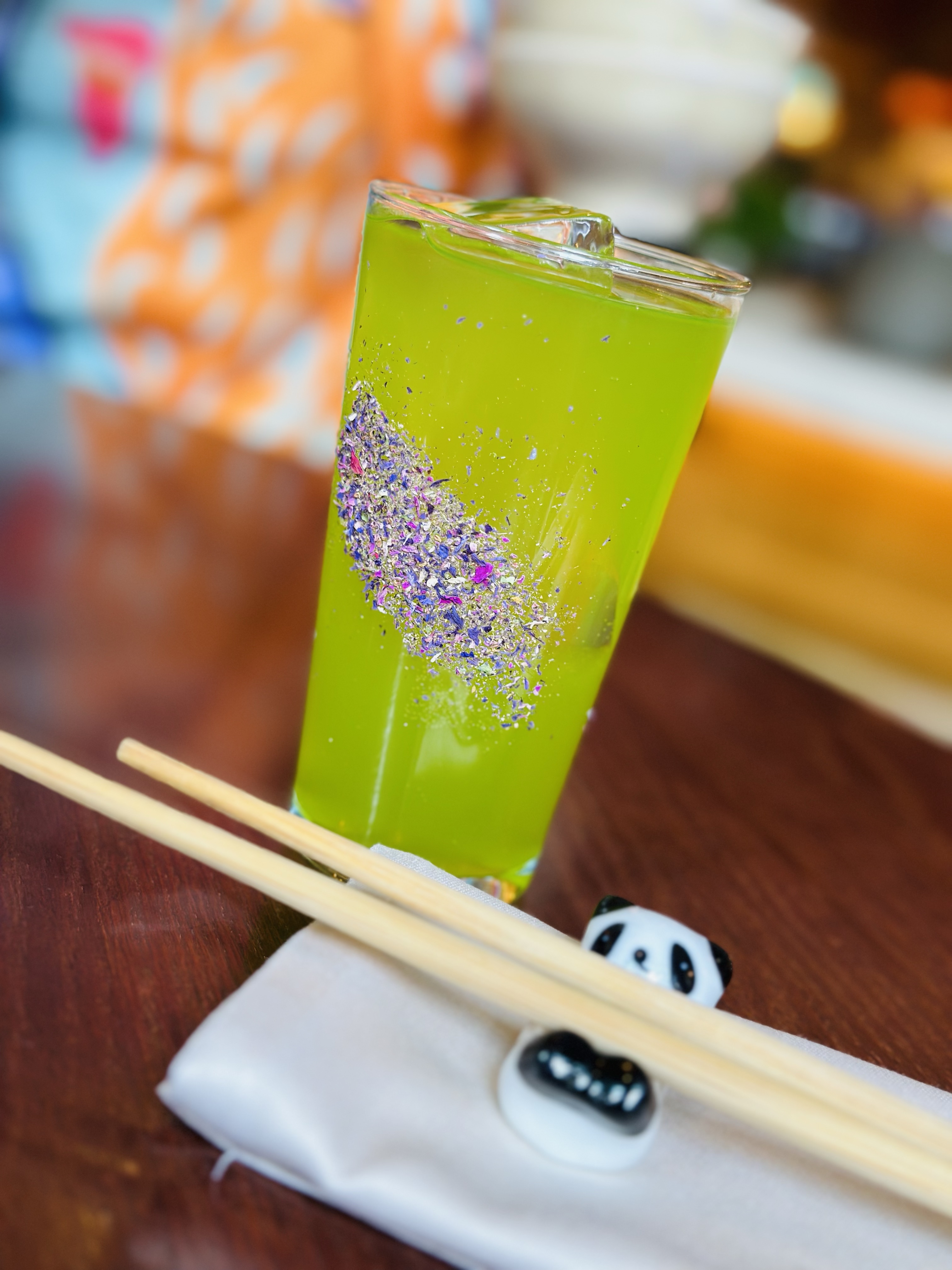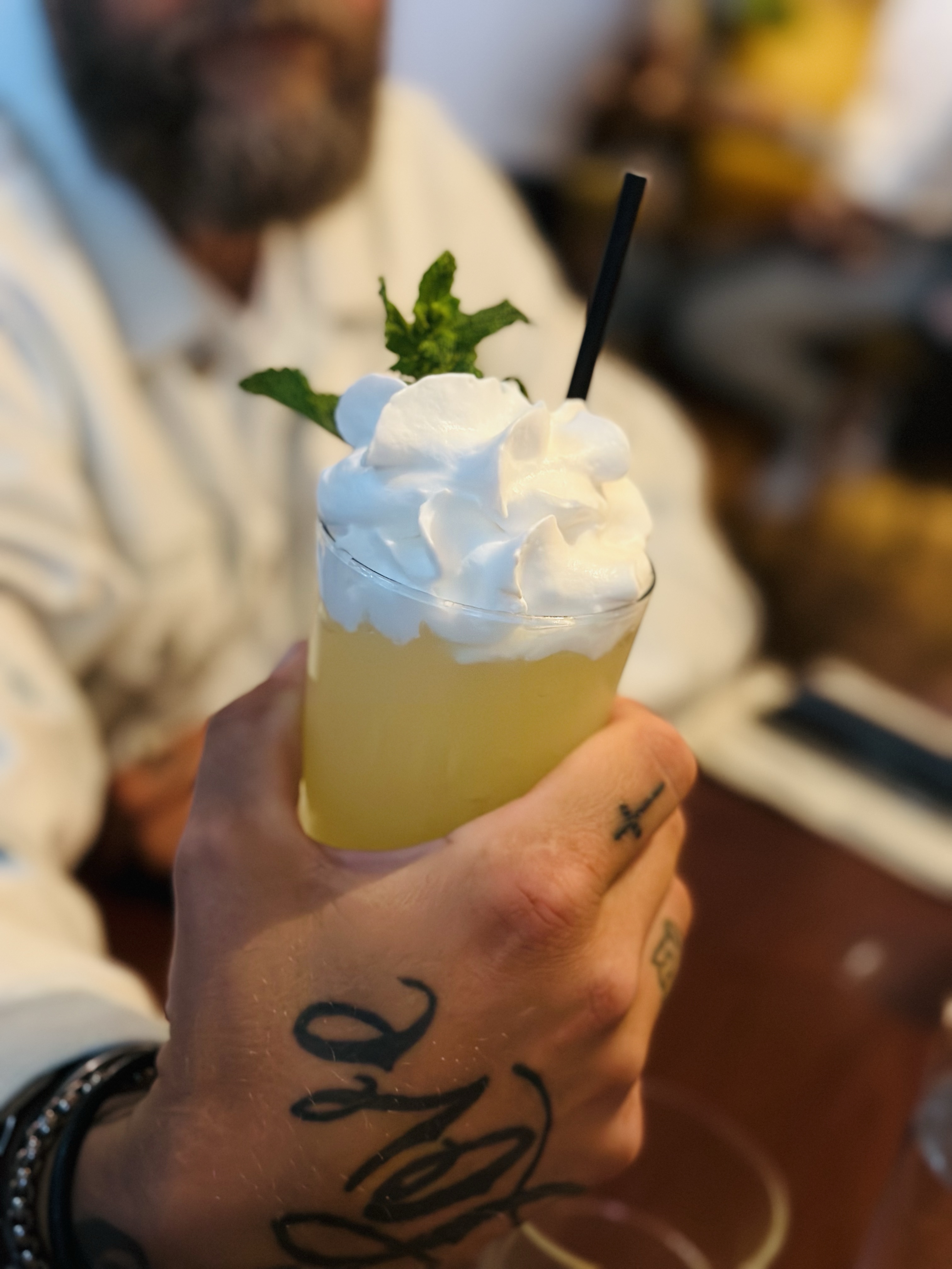 Högst upp, Cori-Lee: Gin, koriander, matcha te och yuzu. Så fräsch och fantastiskt god. En alldeles speciell smak. Den sista med gin, kokos och kokosgrädde. Den rosa var en dröm. Oj oj!