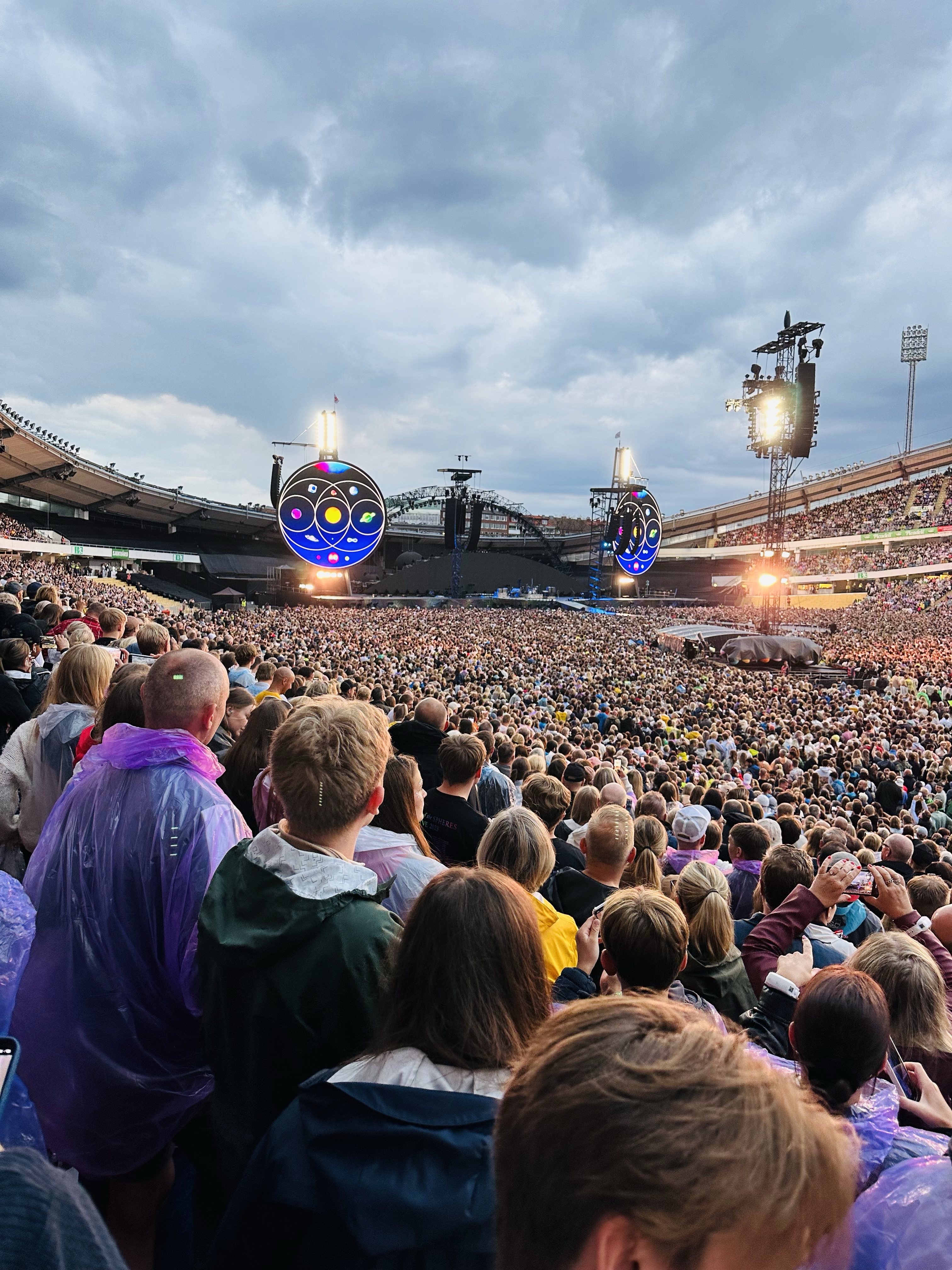 Scenen var otrolig! Och Ullevi kändes som en perfekt arena för att ta emot ett band som Coldplay på. När konserten sen drog igång så var det som att kastas in i en enda lång kärleksupplevelse där alla känslor fick plats. Lycka, eufori, glädje, känslor som toppade i taket hela tiden. Gud, jag kastades med som i en centrifug av känslor, och jag lät allt bara hända. Jag bara kastade mig med med alla 70000 människor som var där och så lät jag allt bara hända.