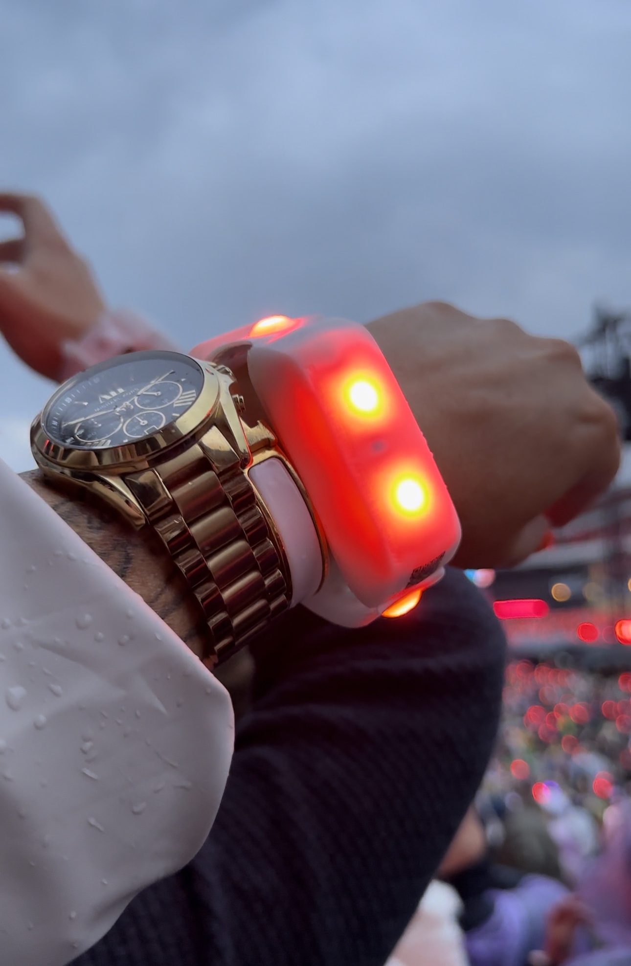 Alla fick ett armband på sig som man skulle bära hela konserten och sen lämna tillbaka efteråt. Fanns t.o.m. en topplista på länder där flest lämnat tillbaka banden efteråt.