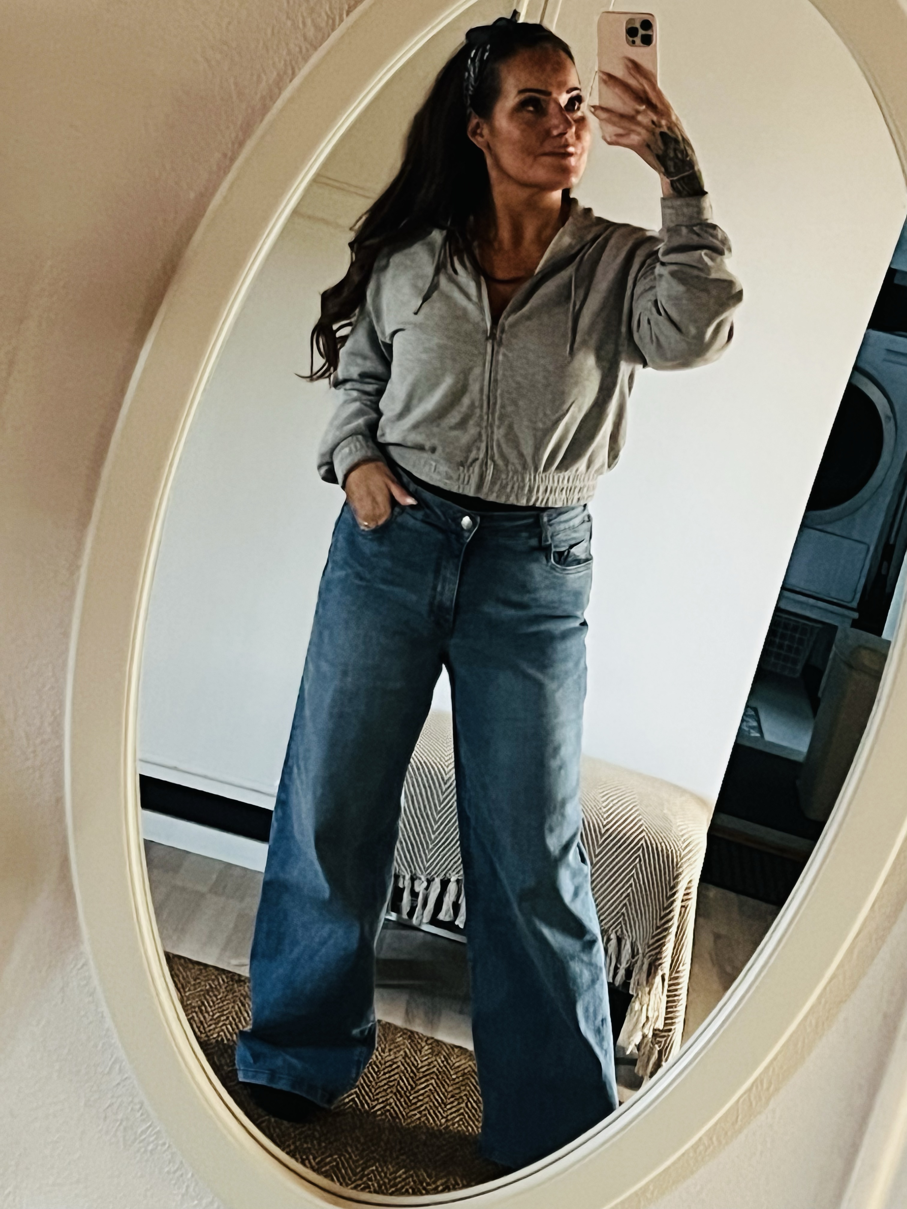 Snygga jeans 🙌 vad tog du för storlek? Din vanliga? Tänker om dom är stora i storleken…