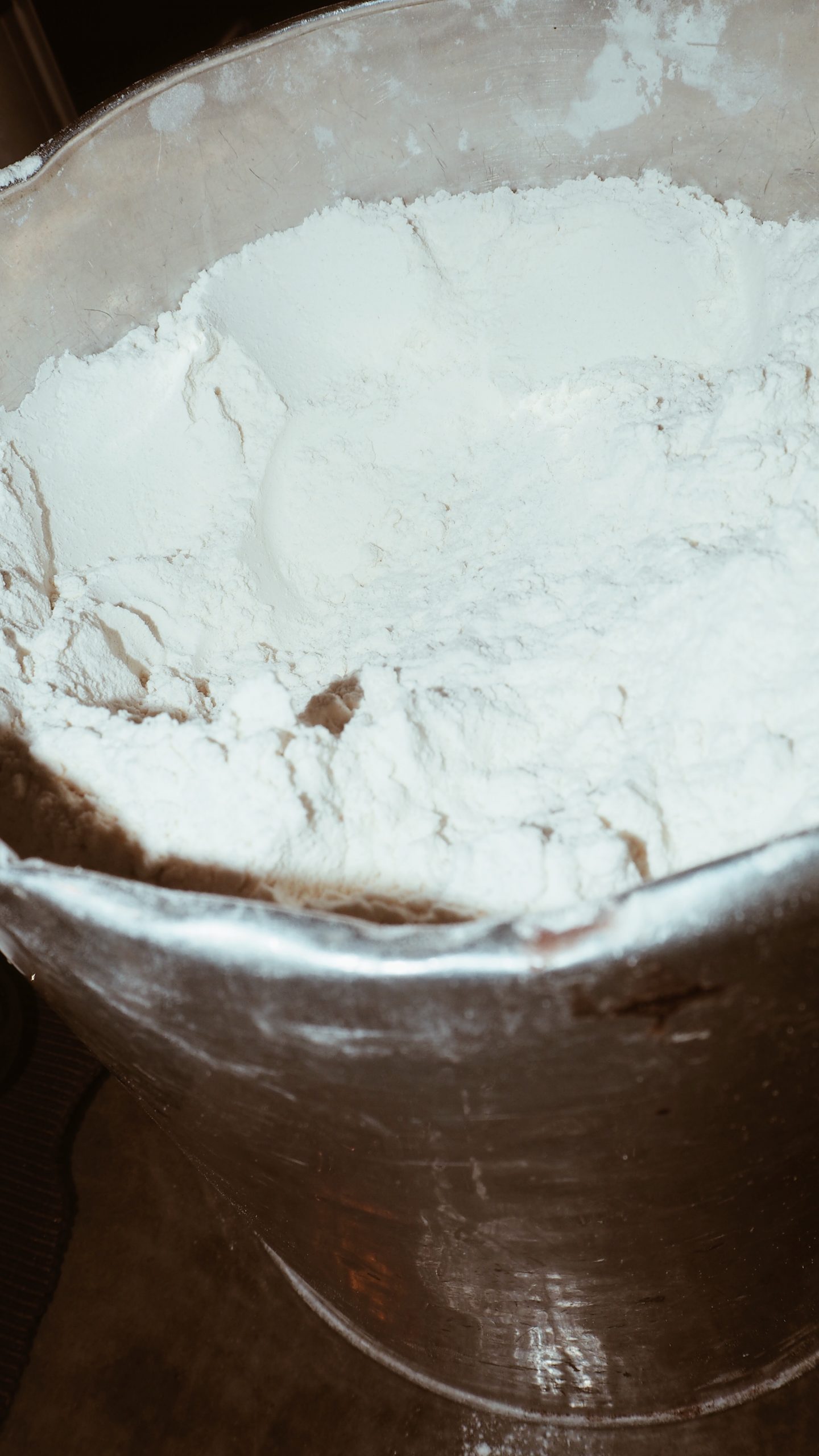 Lite halvkass bild men detta är min älskade mjölburk. Den är gammal som gatan, köpt på Loppis och rymmer 5 kg mjöl. Jag älskar den där burkf*n. Haha….