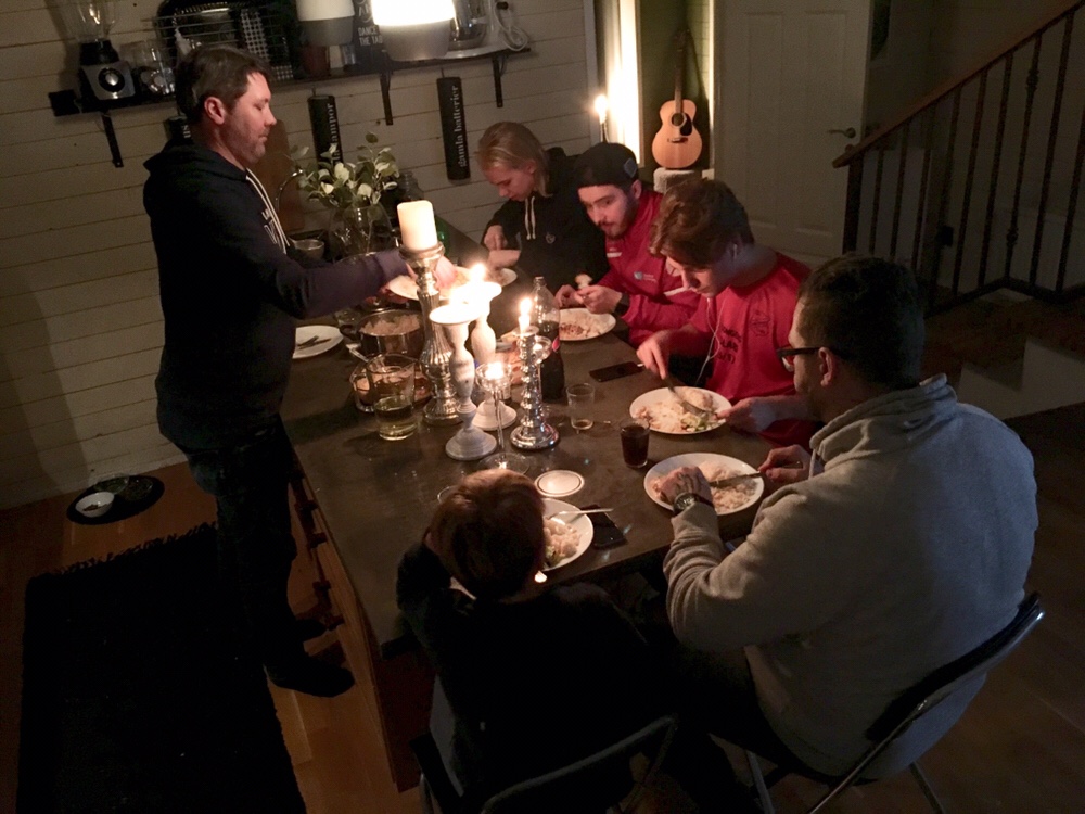 Lite bilder från vår kväll igår. Nu hattar jag bland ämnena här hörni…. Parmesan över hela bordet och massor med folk runt bordet. Precis så som det är så galet härligt!