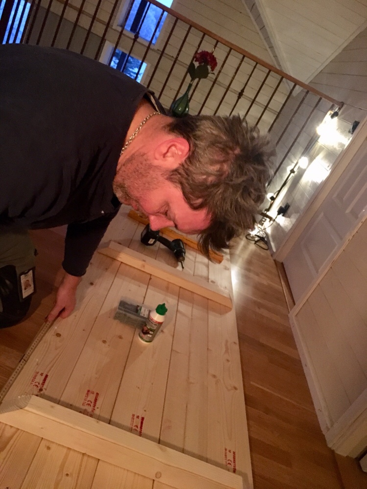 Här är det snickeriverkstad just nu. Bordet håller på att byggas. Imorgon ska jag måla det lite. Sen ska stolar och lampor beställas. Åh vad jag vill att vi ska sitta vid det NU och myyyyyyyyyyyyysa!