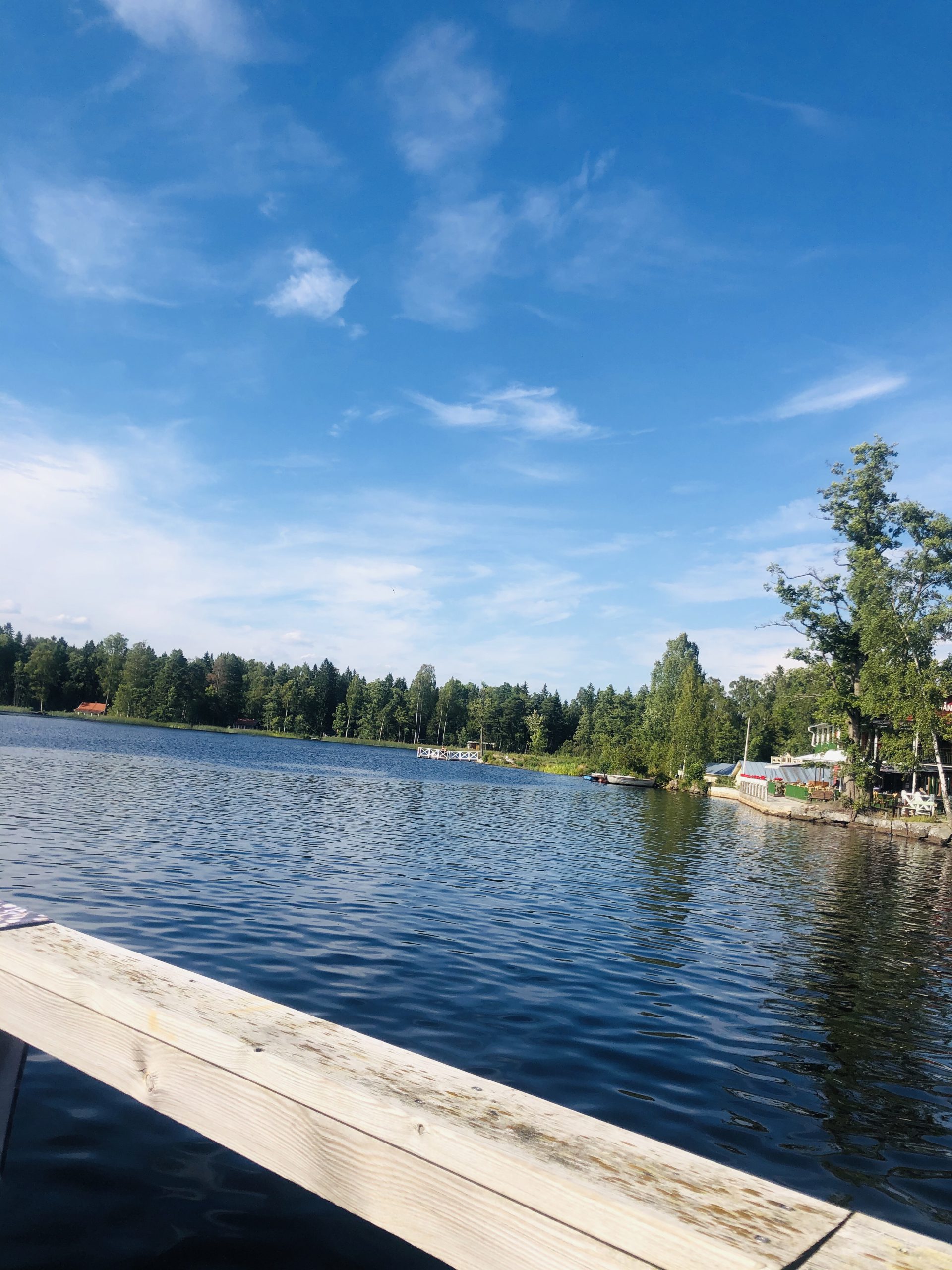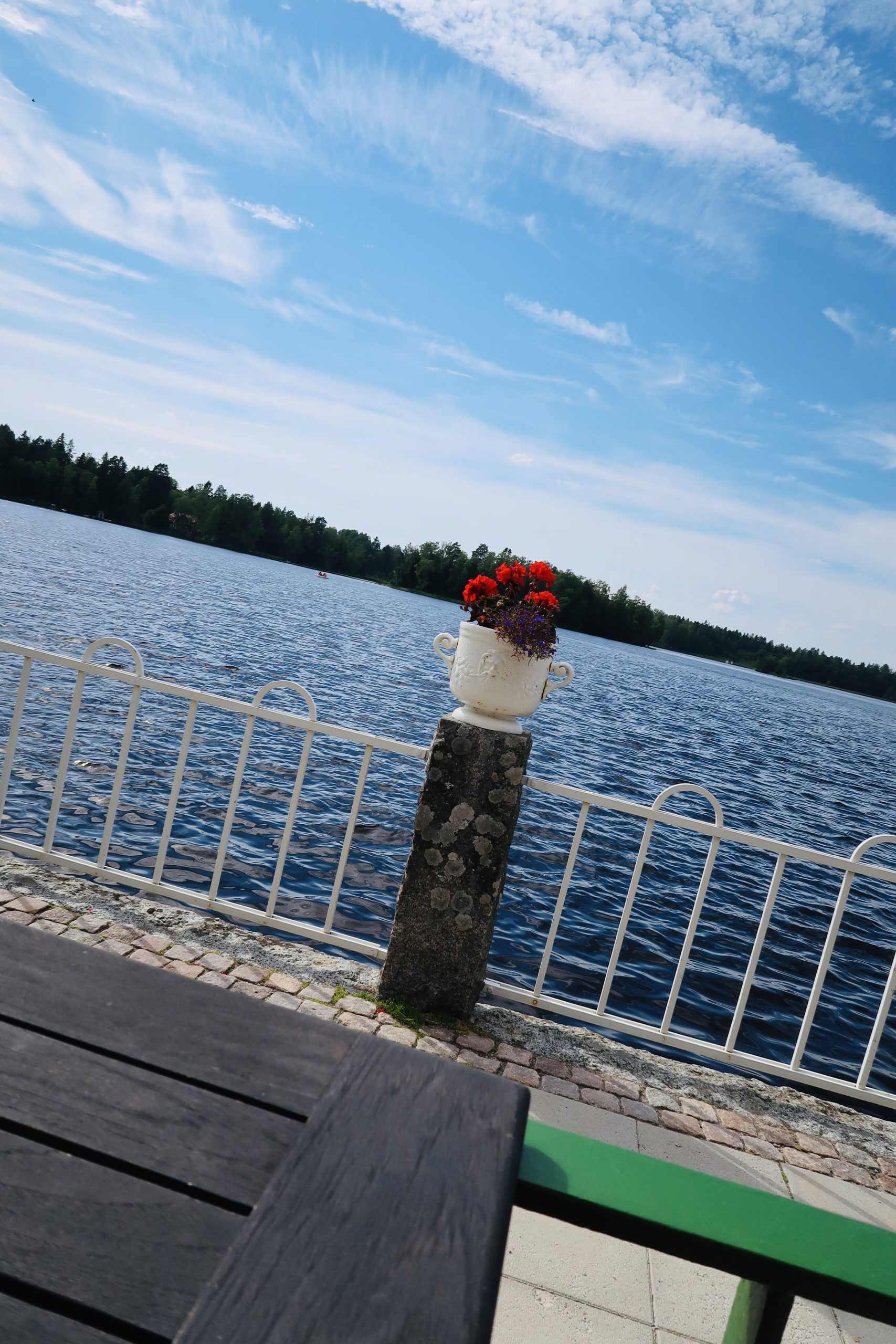 Vi satte oss på bryggan där det fläktade bäst. Där kände man inte av värmen på samma sätt. 31 grader igår hörni, fantastiskt vilken värme som strömmar emot oss nu.