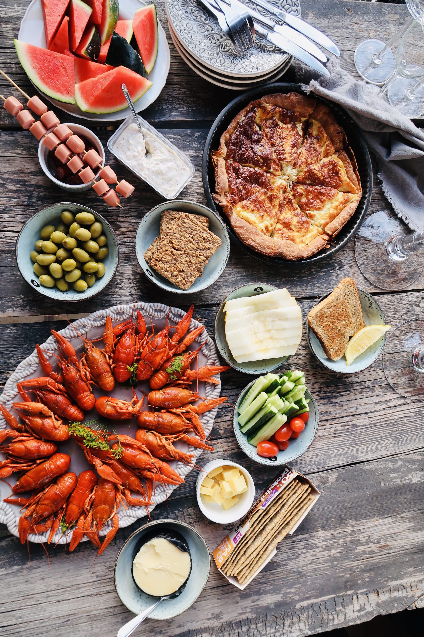 På vägen hem fick jag ett sånt kräft-craving. Det var ju kräftpremiär igår så vi kvistade förbi ICA på vägen hem och köpte kräftor. Gjorde en ”fusk-VÄSTERBOTTENPAJ” med köpt glutenfri pajbotten. Ja jag brukar kalla det fusk då men egentligen har man ju gjort hälften själv. Toppen när man har lite bråttom och känner att man inte hinner pyssla med pajbotten. Kräftorna var svingoda! Vi köpte Pandalus färska turkiska kräftor och dom var som sagt supergoda! Lite små klor men det är smällar man får ta. Jag fick i alla fall ÄNTLIGEN sörpla kräftor medan Tony fascinerat tittade på. Han är fascinerad på riktigt tror jag för han ställer 100 frågor om hur det känns och hur det smakar och vad som är godast. Kanske för att han själv aldrig skulle äta det så är han fascinerad över hur jag kan? Haha…. Nej, han äter inte kräftor och Milo bara smakar lite. Så jag fick gotta mig alldeles själv. Gottade oss också med Black Bomber ost (favorit), comté ost, och annat smått och gott. Vi satt på altanen och myste och klockan var över 8 på kvällen så värmen var inte sådär galen då. En mysig lördag!