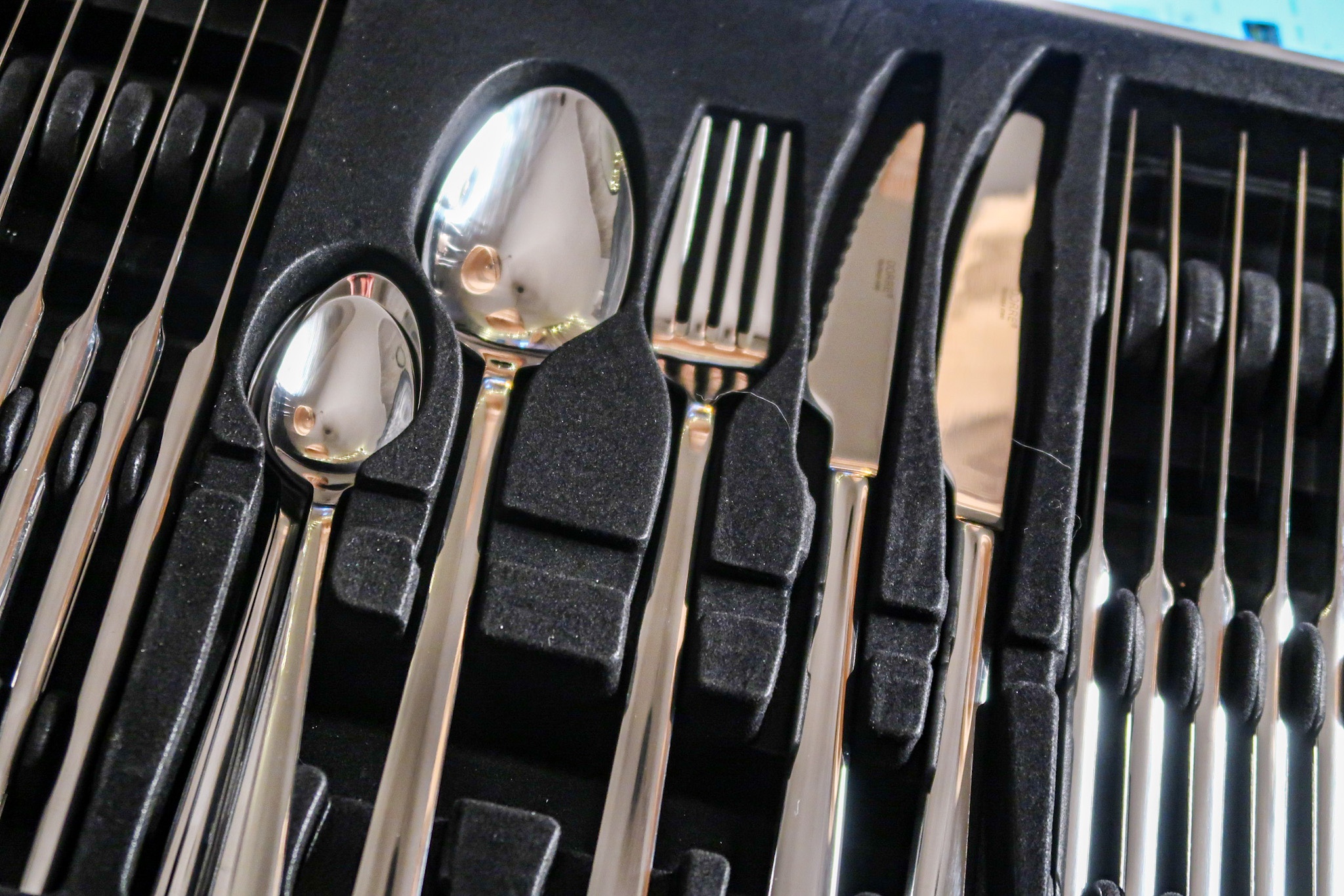 Det blev ett nytt bestickset också. Jag blev lite snål när jag höll på och beställa, här fick man nämligen hela 60 delar med köttknivar för samma pris som de med 30 delar. Var rädd att de skulle se billiga ut men det gjorde dem inte. Stilrena, raka och snygga. Gillar! ♥️