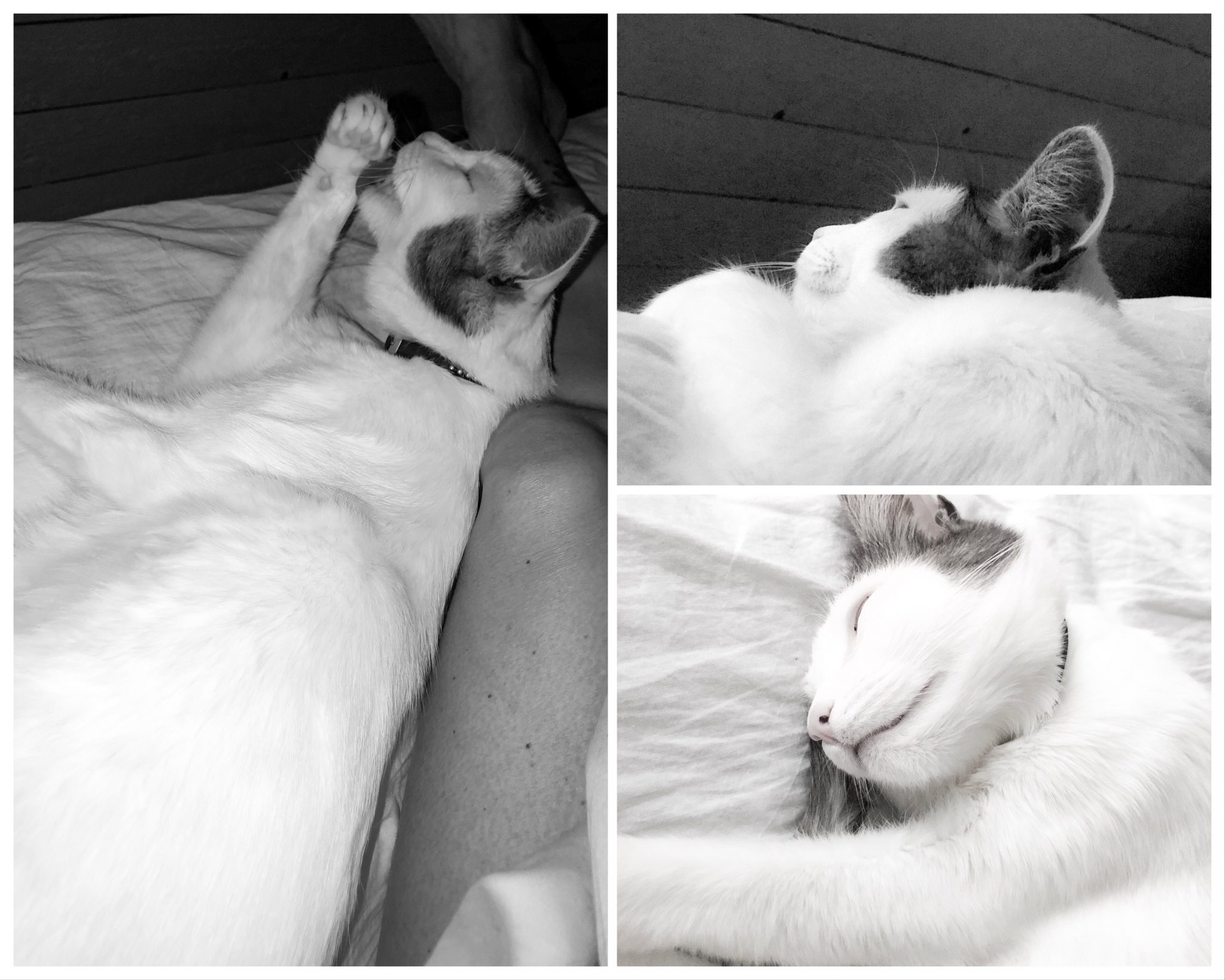 Här är det morgonmys i sängen. Hon ligger bredvid mig som alltid. Hennes ”mammighet” blir bara värre och värre tycker jag. Är jag hemifrån i ett par timmar så rusar hon ned från övervåningen och ”skriker” högt och stryker längs mina ben tills jag satt mig ned. Gud nåde om vi är borta en helg, då vet hon knappt var hon ska ta vägen? Hon ”skriker” höööögt och kommer springande och sen blir jag inte av med henne.