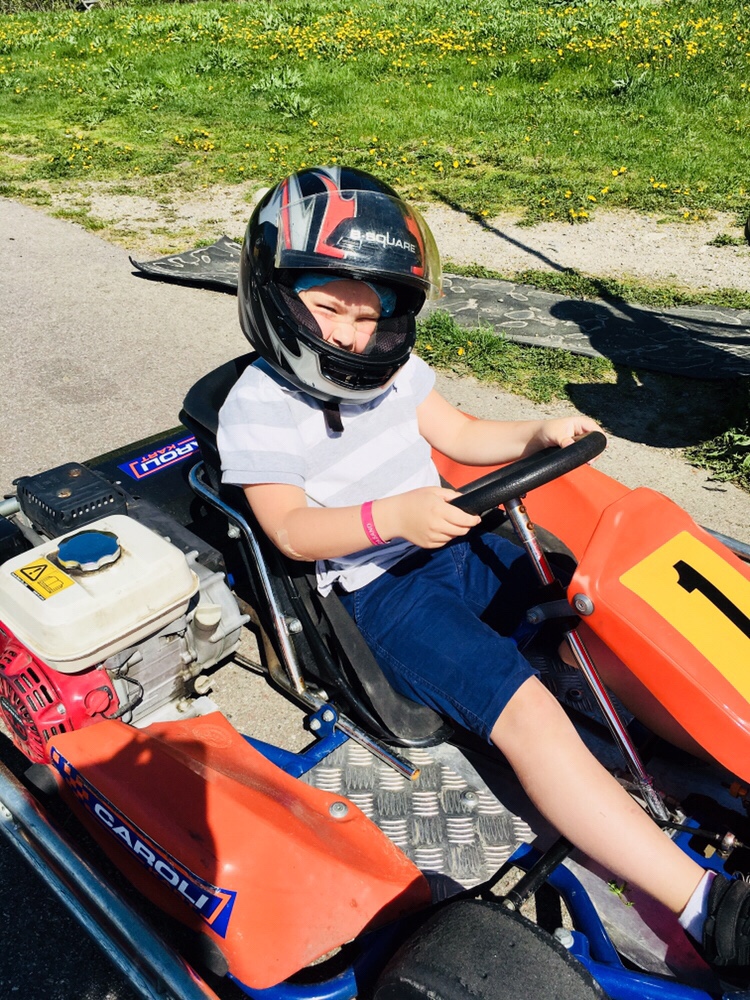 Han fick också testa på att åka go-cart för första gången i sitt liv. Han var euforisk, så jäkla kuuuuuul skrek han.