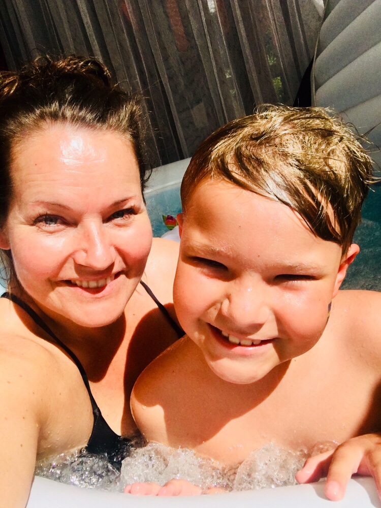 Vi gjorde i ordning baksidan med bubbelpool. Där spenderades många timmar. Både träning och bubbelkopp blev det.