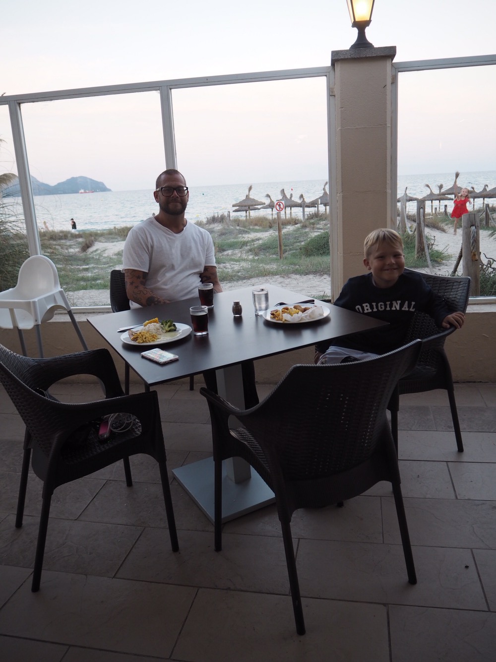 Ikväll blev det middag på ett annat ställe på hotellet. Det var riktigt mysigt att sitta med utsikten ned över stranden. Vi bor ju på stranden kan man säga. Så härligt!