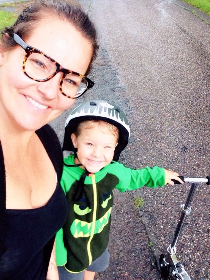 Vi klarade oss ifrån regnet, lite droppade det på oss men när det ändå är varmt i luften tycker jag inte att det gör så mycket. Han visade mig 147 olika trix med sin kick-bike. Dom ser ungefär likadana ut allihop men kommer det inte ett ”WOW” eller liknande från mig gör han 147 till. 😉 Han har faktiskt blivit jätteduktig och kan hoppa med sin kickbike och allt. Mycket ska vara coolt och häftigt i den här åldern förstår ni.