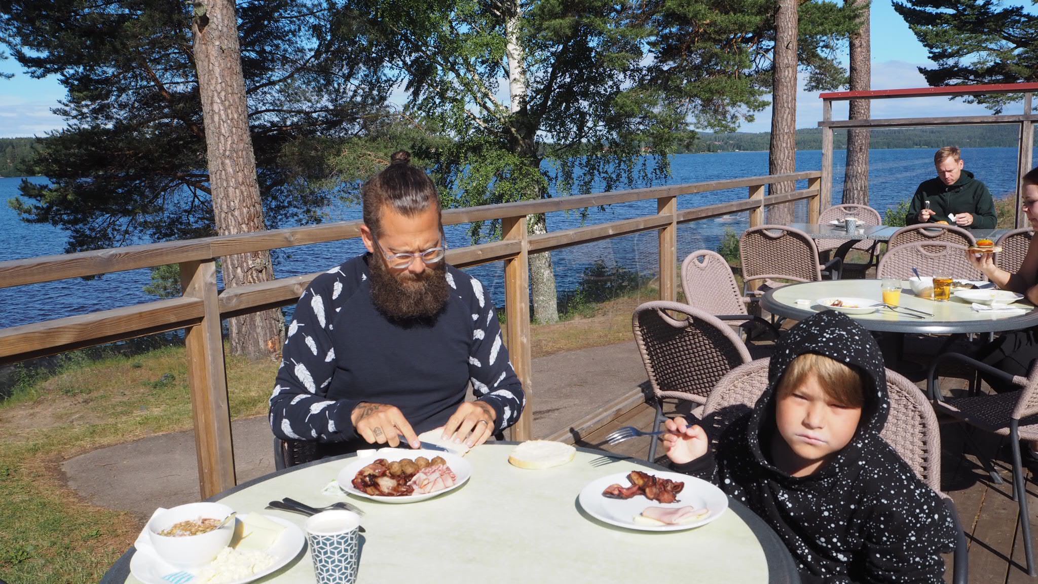 Vi startade med frukost på Leksand Strand. Vi satt verkligen precis vid vattnet och bara mös. Solen gassade från klarblå himmel så det blev ju fetaste bonusen för oss det.