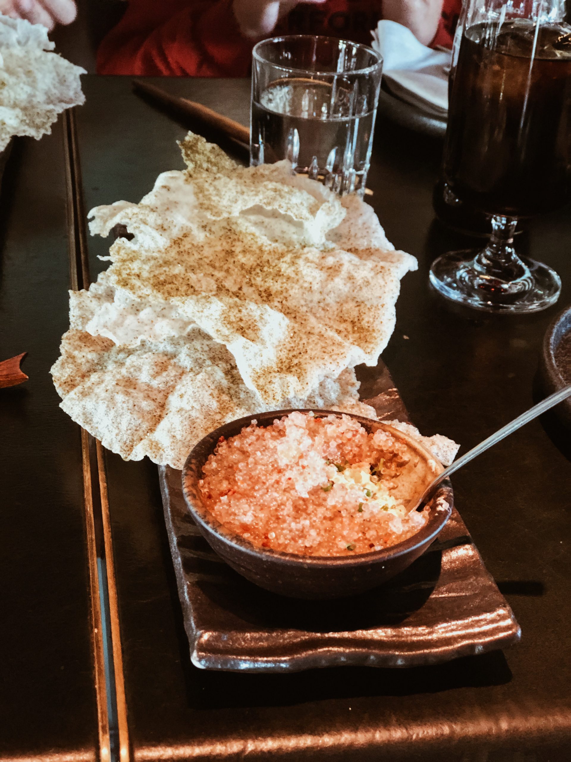 Vi käkade på Locavore som ligger på 18:e våningen. En asiatisk restaurang som gjort en alldeles egen twist på all mat. Du får en färdigkomponerad meny men kan säga till om allergier osv så ändrar dem efter det.