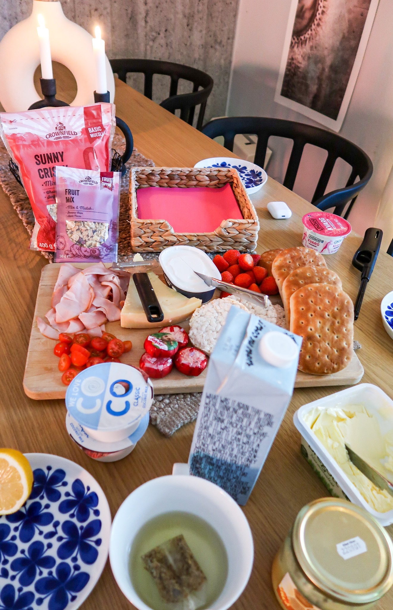 Lördagens frukost! Ååååååh vad jag ÄLSKAR helgfrukostar. Idag ska vi få njuta av en helgfrukost igen. Tycker det är så mysigt att få sitta och njuta länge på helgerna. TV:n på, tända ljus, familjen samlad. Ja men hur mysigt som helst, något jag uppskattar nästan lite överdrivet mycket. 😀 Tony är ingen frukostmänniska så han och jag krockar rätt hårt. Haha…. Han kan tänka sig och bara lägga påsen med bröd i på köksbordet, sen har han dukat färdigt. En annan vill ha finporslin, tända ljus och tipp topp.