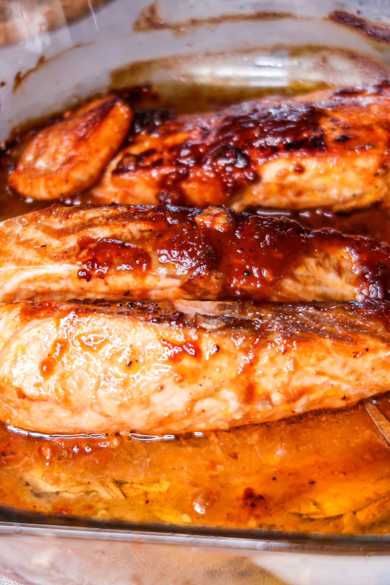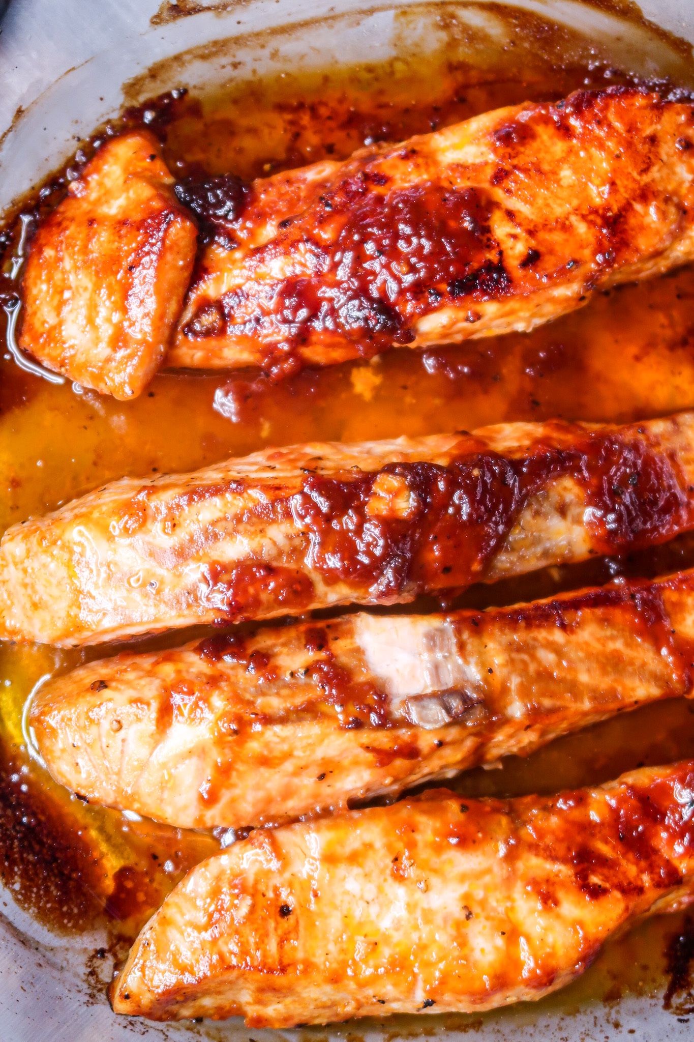 Laxen kommer efter att den stekts läggas i en ugnsfast form och bli klar i ugnen, då kommer den underbara marinaden att gojsa till sig alldeles sådär härligt extra.