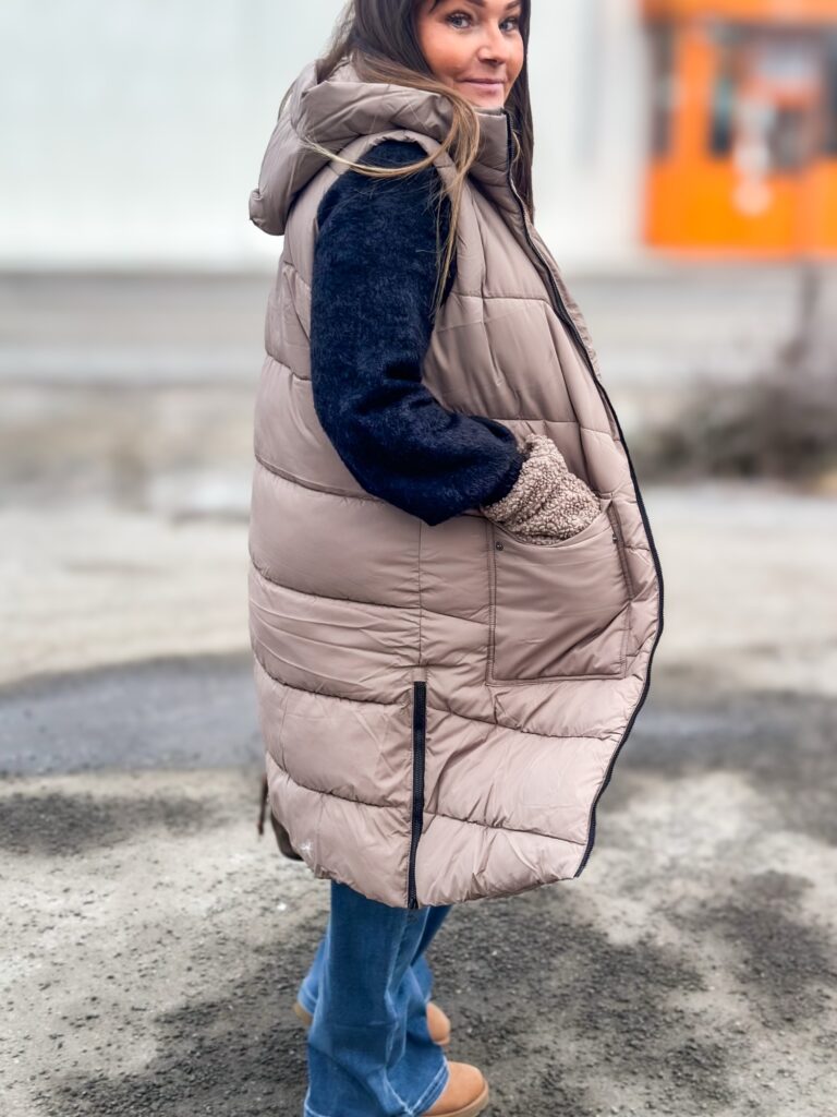På väg till affären i min nya fluffiga väst som jag vet att jag kommer använda massor, när takdroppet är här så är det jag som kommer ha den här i vått och torrt. Så bra pris just nu! Jeansen var ni många som klickade hem när jag tipsade på Instagram, och koftan hörni…. Mjukaste jag haft! 😍