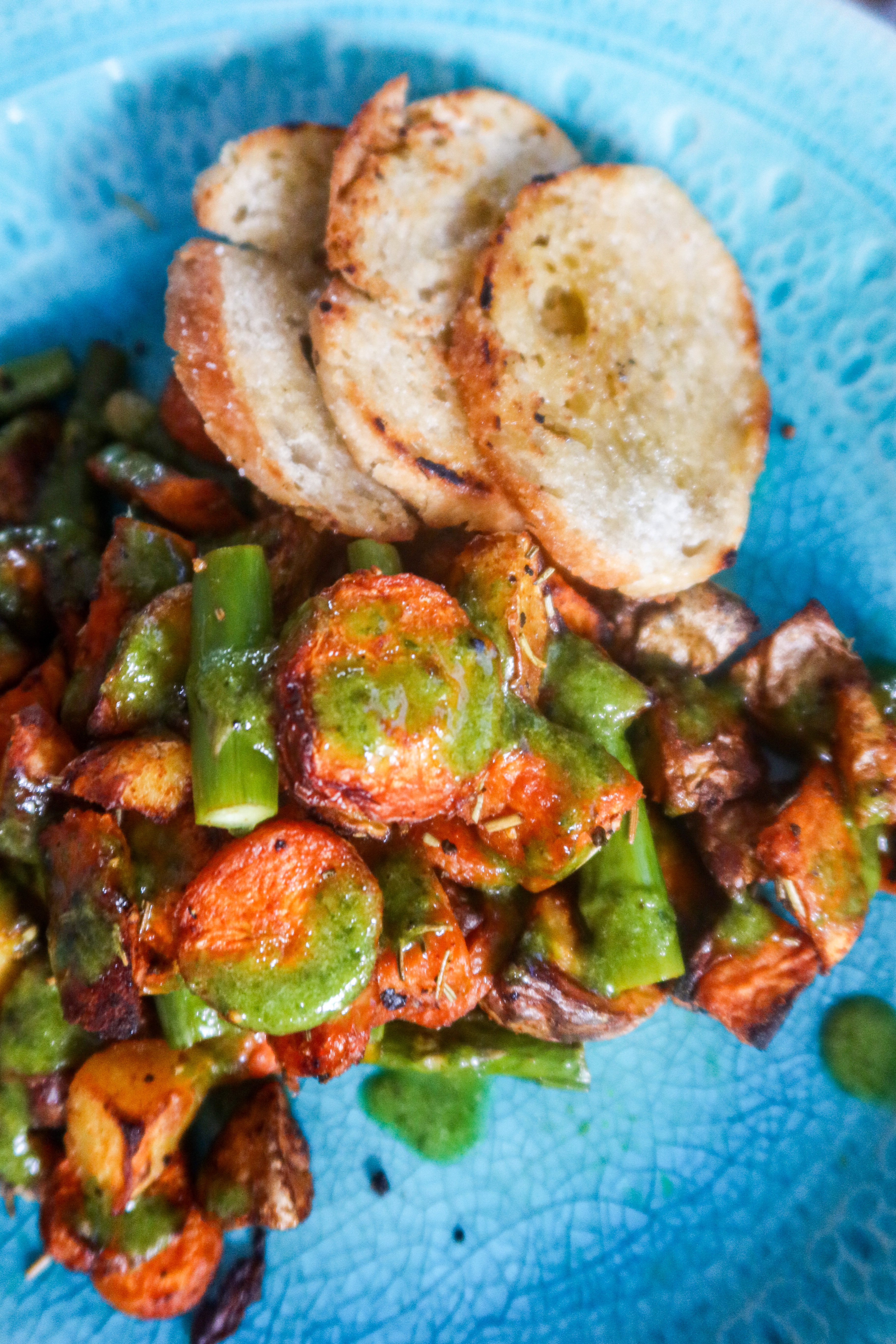 Vi åt detta till rostade grönsaker med lite krispigt stekt bröd. Så gott så gott!