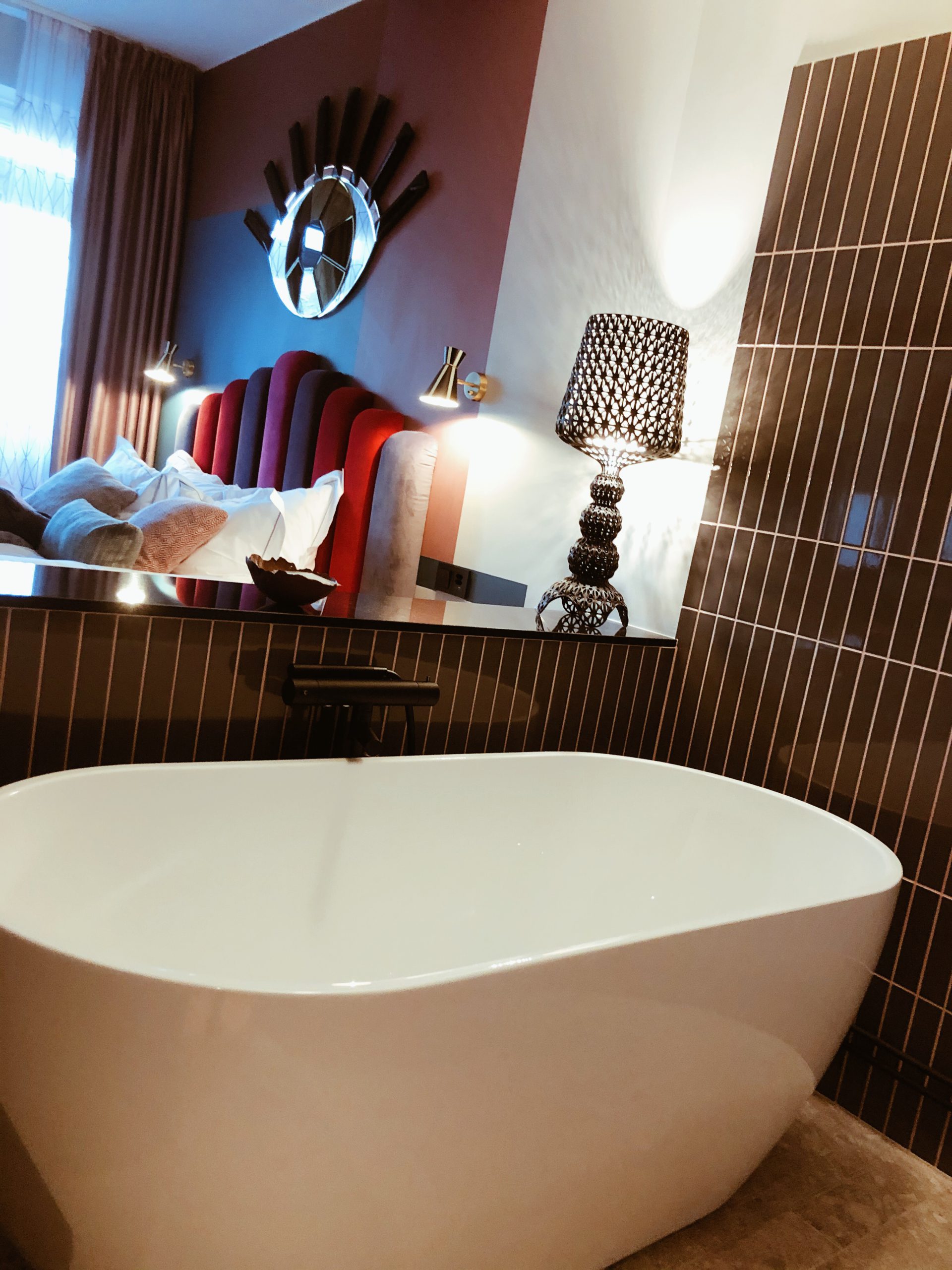Superhärligt rum med badkar mottin rummet. Milo var lyrisk. Den gossen älskar att bo på hotell. Eller slott är ju detta faktiskt. Å ja, Milo visste vad den guldiga saken på nattygsbordet var. Har sett att vissa barn och ungdomar inte har en aning….. haha. Lite sött faktiskt.