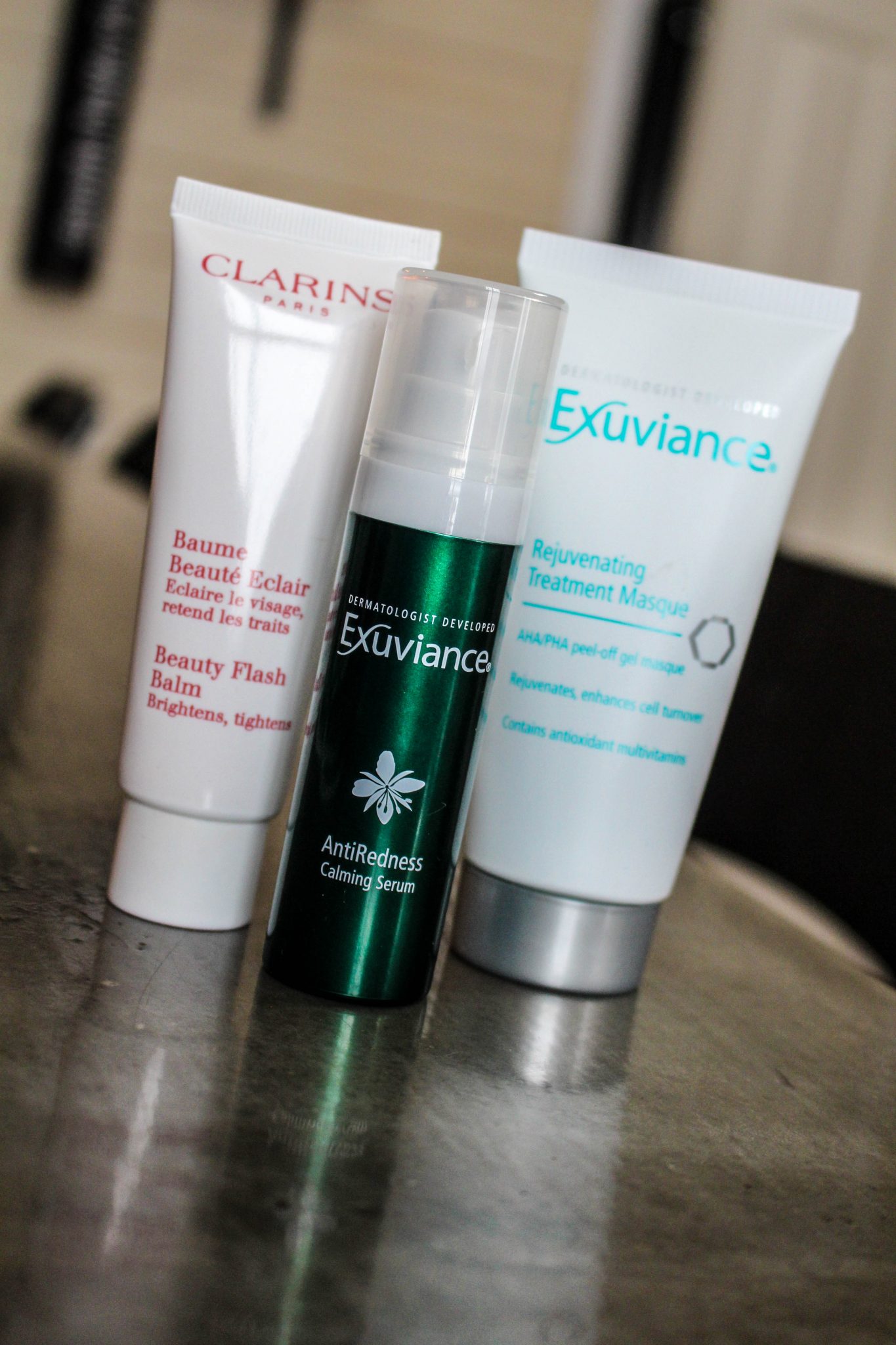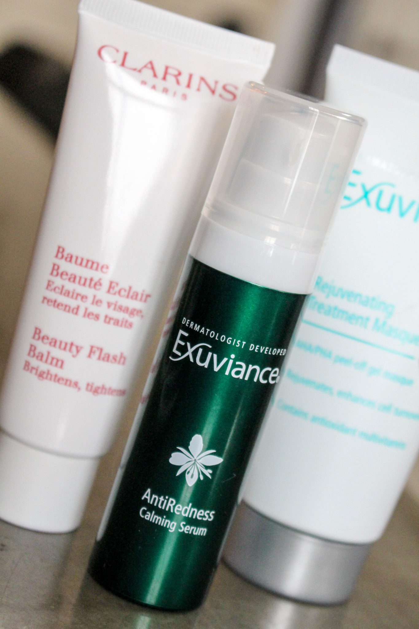 Produkten i mitten är en produkt som hjälper till mot rodnad, anti redness från Exuviance. Jag har införskaffat 2 nu både till pappa och Elliot. Pappa för sin rosascea och Elliot för sin dermatit han har runt näsa och mun. Det finns inte nog med utropstecken för denna produkt. Pappas rosascea typ försvann som han hade i ansiktet. Han har haft plågsamt onda acneliknande utslag i hela pannan och ibland på näsan men med den här produkten så försvann de på 2 veckor. Då har han provat ALLT. Allt från penicillin till kortisonkrämer. POFF – borta. Inget svidande och ömmande i ansiktet mer. Dock så fick han slut på burken och var utan i 2 veckor, då fick han tillbaka det. Men nu har han börjat igen och mycket riktigt så är det på väg bort igen. Jag letade på nätet efter en produkt som skulle hjälpa mot det och det var väldigt många som
