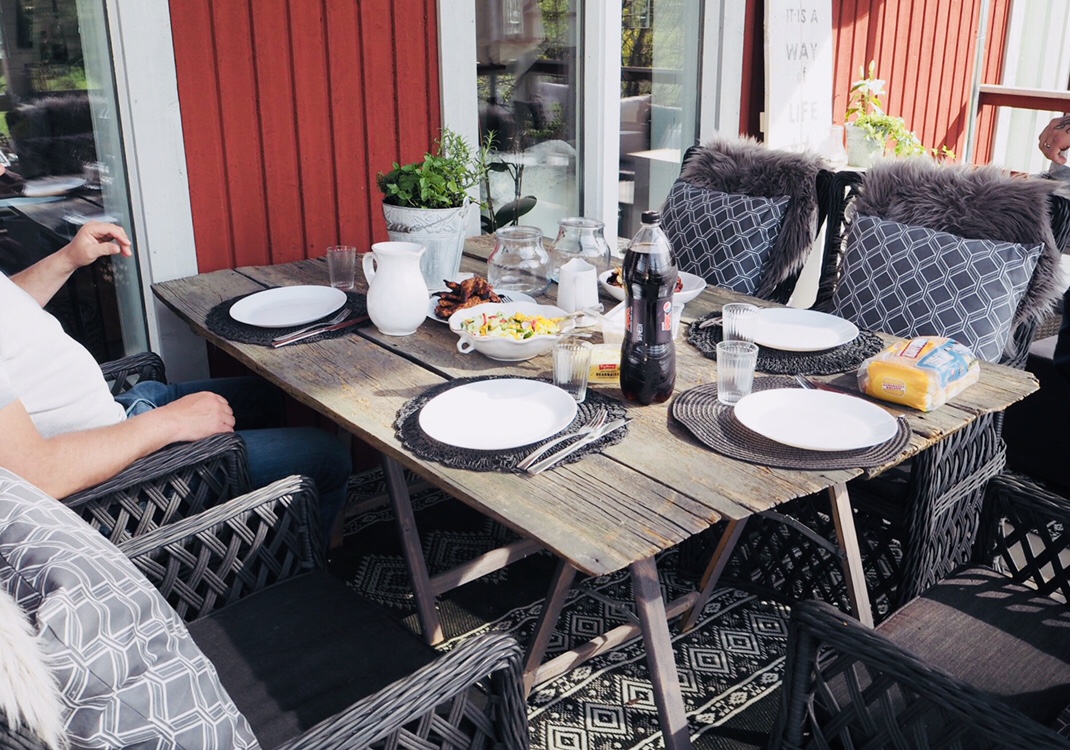Åh vad härligt o så gott med grillat! Var har ni köpt soffan på altanen?
