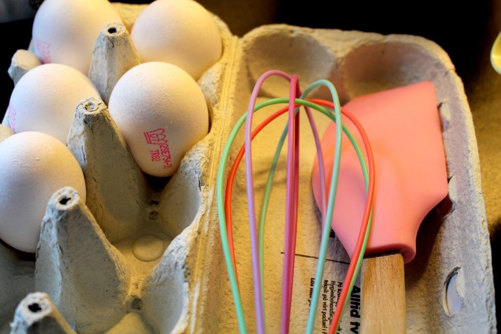 1) Vispa samman ägg och socker. Det ska bli vitt och pösigt.