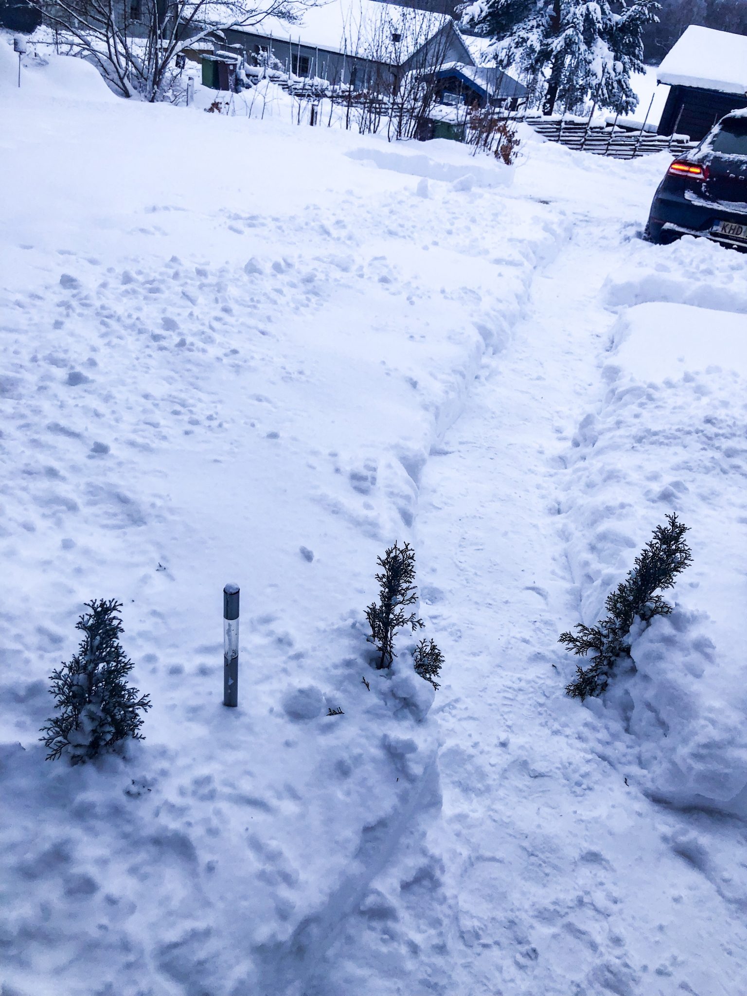 När vi får skotta såna här gångar vet att man att det snöat hysteriskt, vi är ju inte riktigt vana vid det här i Mellansverige.
