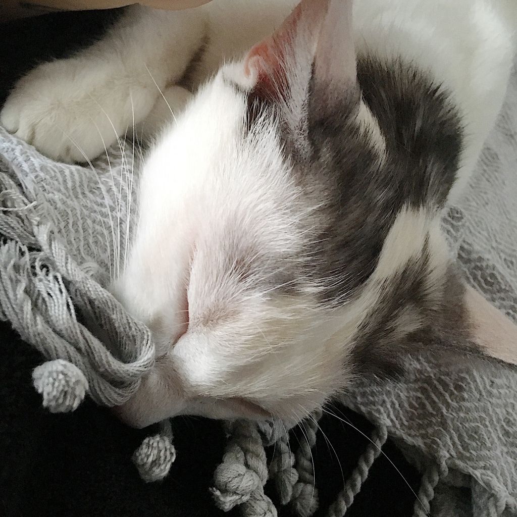 Ååååh….snutt snutt snutt. Hon ligger här och snuttar på min morgonrock. Det låter dessutom högt!