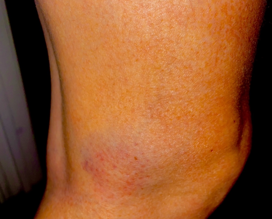 Padel är skitkul men kan också göra vansinnigt ont. Min utsida knä efter att jag råkade dångla till mig själv med mitt racket. Sånt jäkla blåmärke detta blev alltså….. det var allt från lila till grönt.